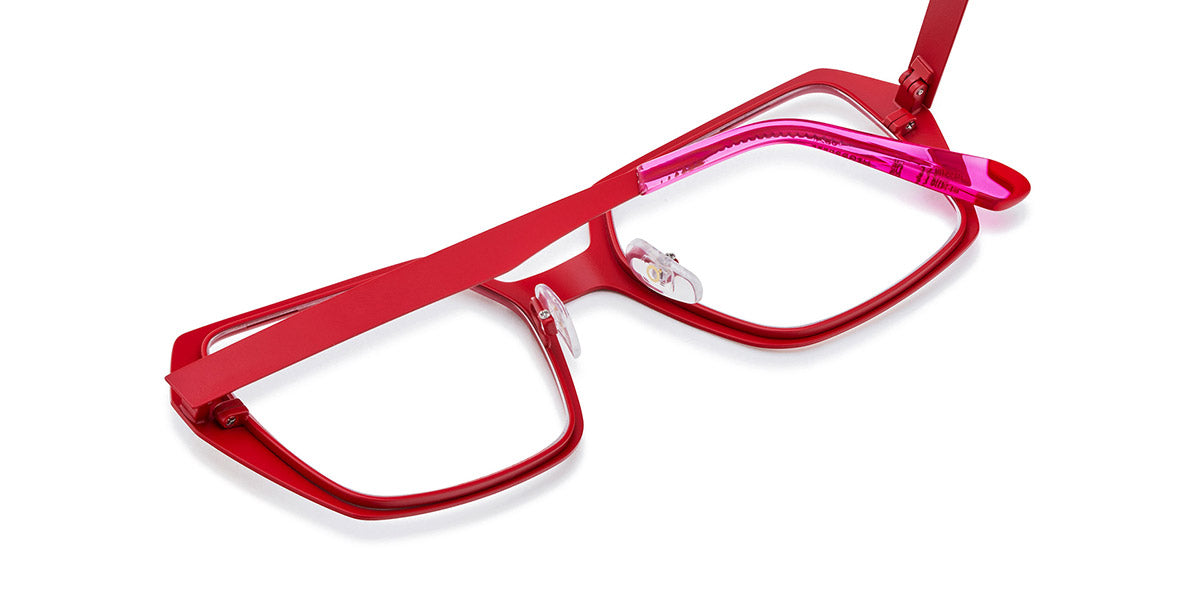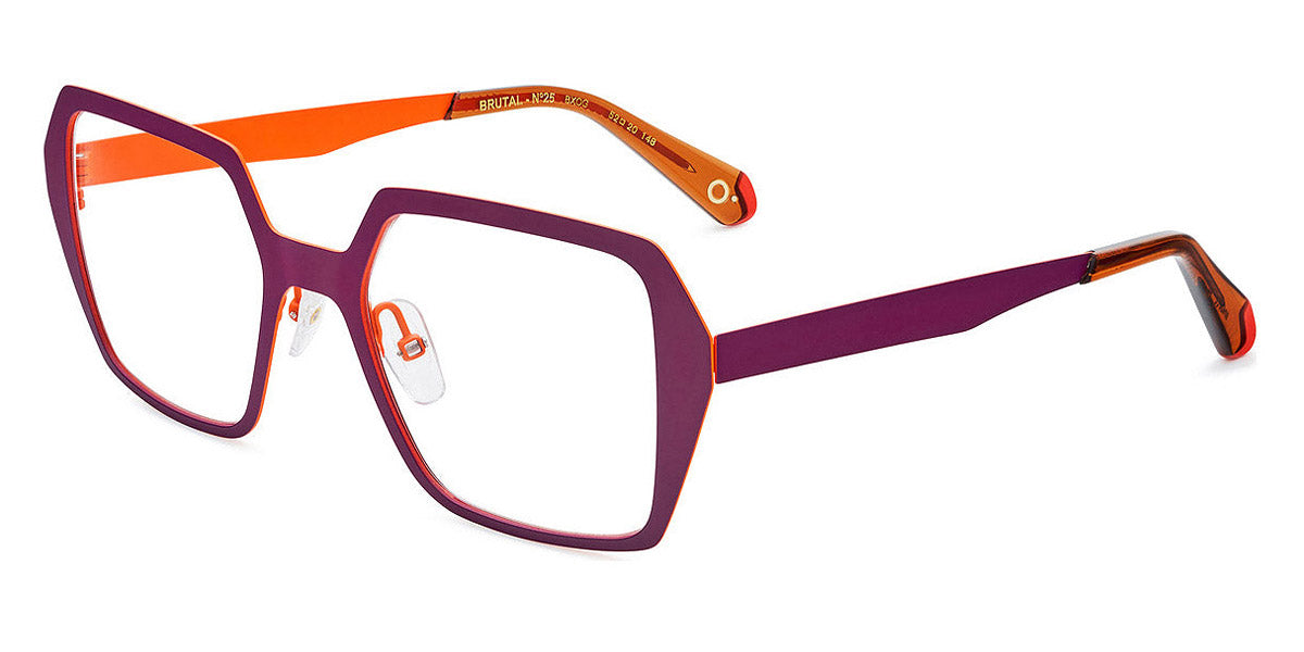 BRUTAL NO.25 Eyeglasses by Etnia Barcelona. Color: BKCH Black/Chess, BXOG Red/Orange, RDFU Red/Pink, Size: 52-20-148. Flaunting bold edges and an oversized butterfly silhouette, the BRUTAL No.25 delivers a look that is fierce and modern. Made from durable acetate that weighs mere ounces, they offer lasting comfort and outstanding style. The vibrant color options with accented temples allow you to easily choose a frame that echoes your unique style and personality. Ideal for confident wearers, this model is a showstopper in any setting.
