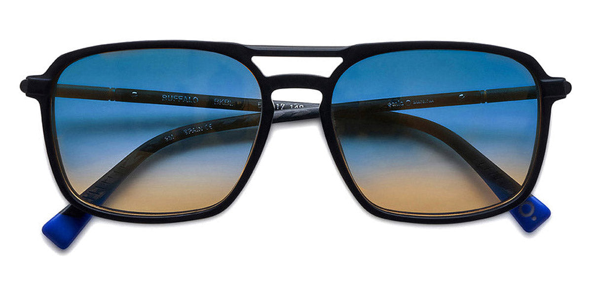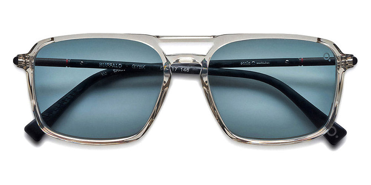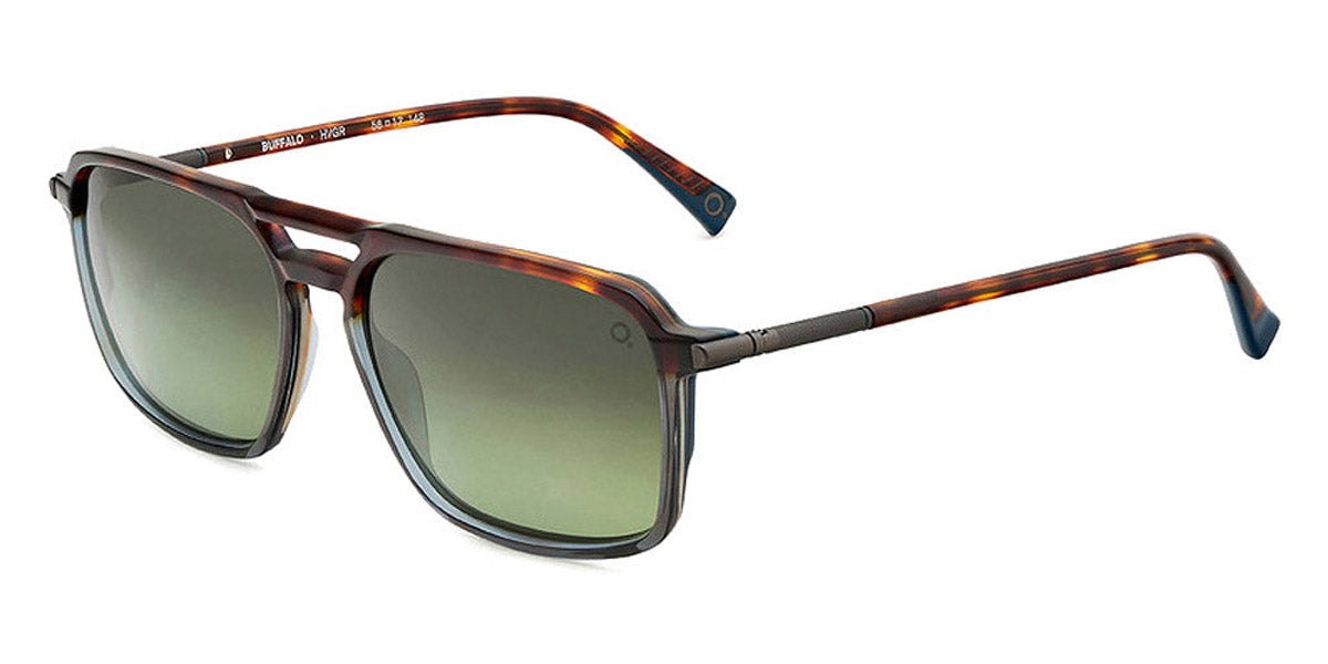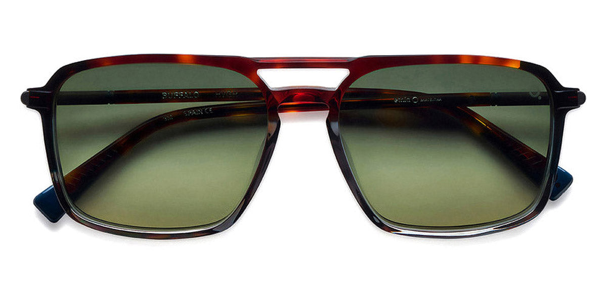 BUFFALO Sunglasses by Etnia Barcelona. Color: HVGR Havana/Green, BLHV Blue/Havana, GYBK Gray/Black, BKBL Black/Blue, Size: 56-17-148. Offering a bold and impactful look, the BUFFALO sunglasses dominate with their powerful aviator shape and substantial square rims. The commanding bridge design underscores their confident presence, creating a silhouette that's as strong as it is stylish. Robust-looking yet lightweight on the face, shades are crafted for those who refuse to blend into the background. Put on the BUFFALO and step into a world where boldness knows no bounds.