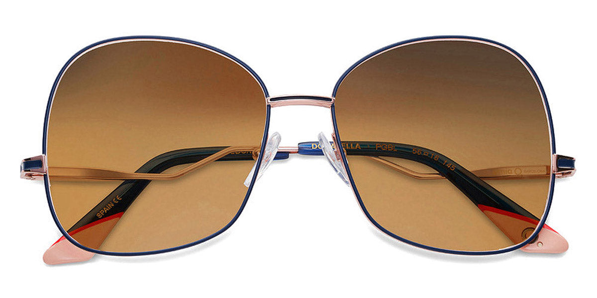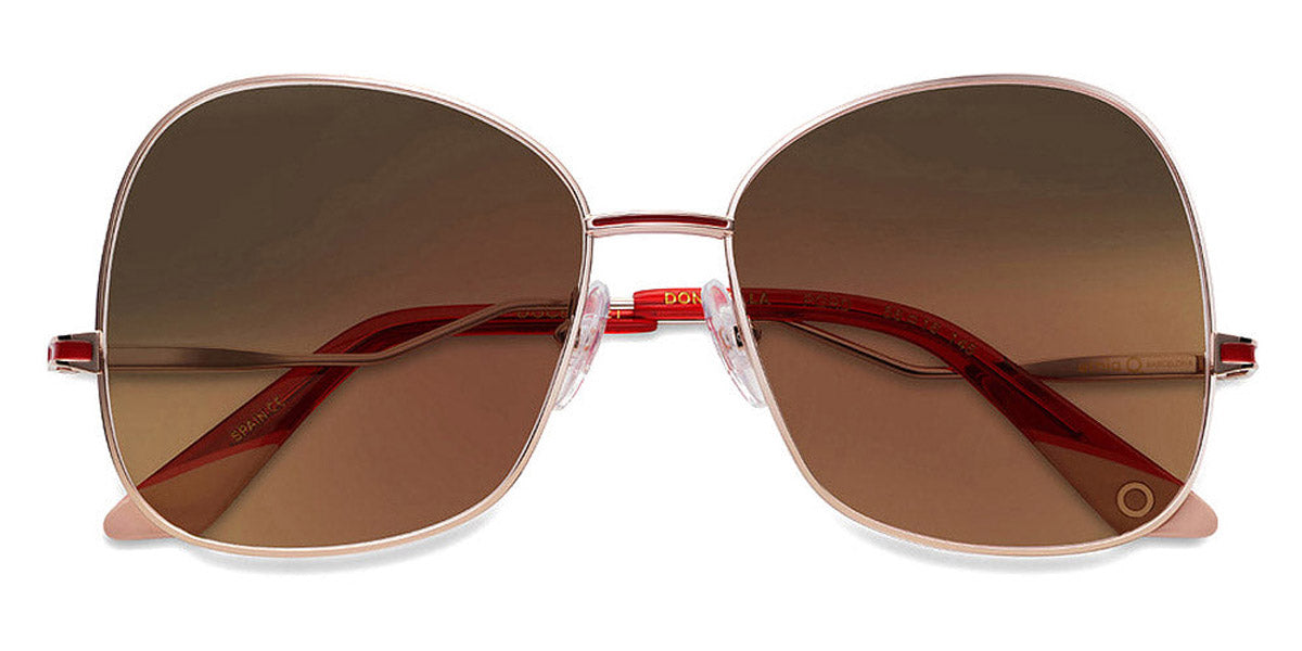 DONATELLA SUN Sunglasses by Etnia Barcelona. Color: PGBL Pink/Blue, PGRD Pink/Red, Size: 56-16-145. With its oversized square lenses framed in sleek metal, the DONATELLA SUN offers an elegant look with a touch of drama. Its whimsically designed temples blend sophistication and flair, while the innovative lens technology brings impeccable anti-glare and UV protection. Combining high-performance materials with a striking design, these shades turn everyday shades into a piece of art that you can wear.