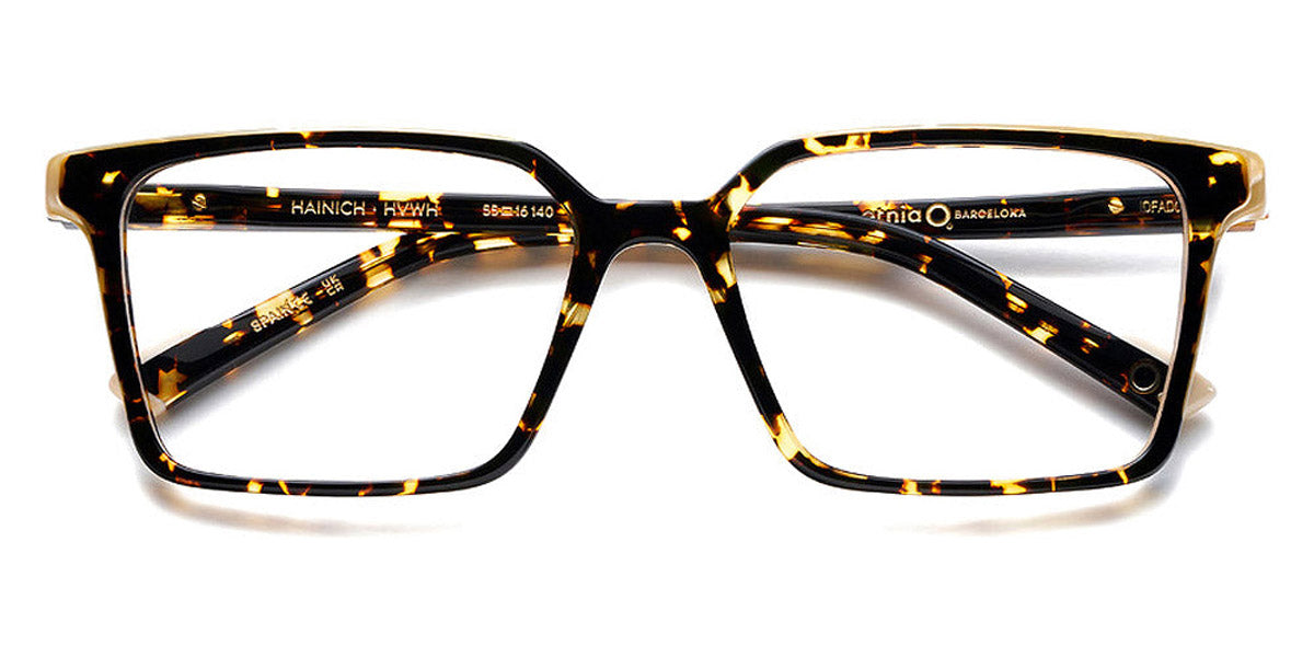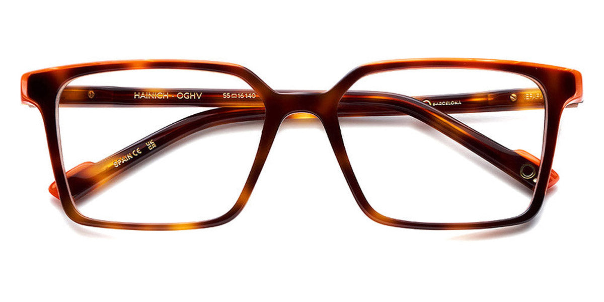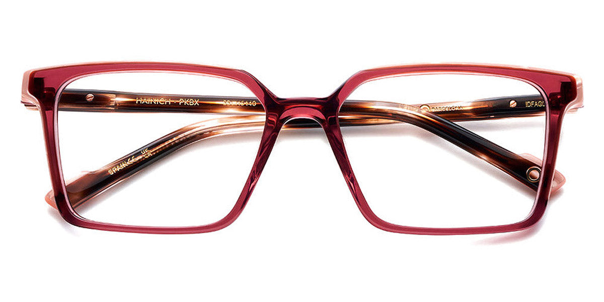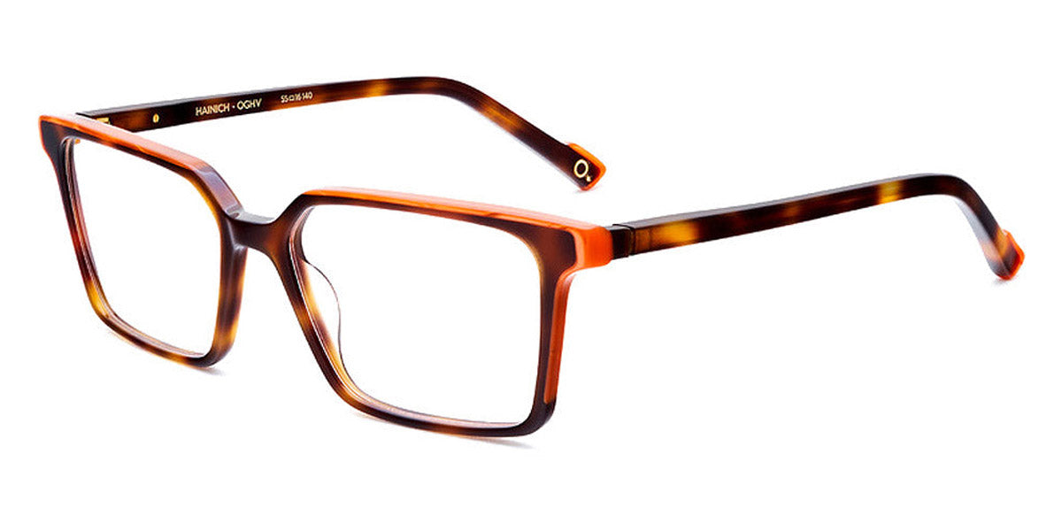 HAINICH Eyeglasses by Etnia Barcelona. Color: OGHV Gold/Havana, BXBL Maroon/Blue, PKBX Pink/Maroon, FUBL Fuchsia/Blue, BKZE Black, OGGR Gold/Green, TQ Turquoise, HVWH Havana/White, Size: 55-16-140. The HAINICH eyeglasses offer a minimalist, sleek aesthetic with a bold square frame. Made by hand from premium Mazzucchelli acetate, this model merges a modern, unobtrusive style with playful end pieces and whimsically colored temples. Lightweight and robust all at once, they sit comfortably on any nose and provide a comfortable fit regardless of your face shape. Go through your day confident and bright wearing the HAINICH.