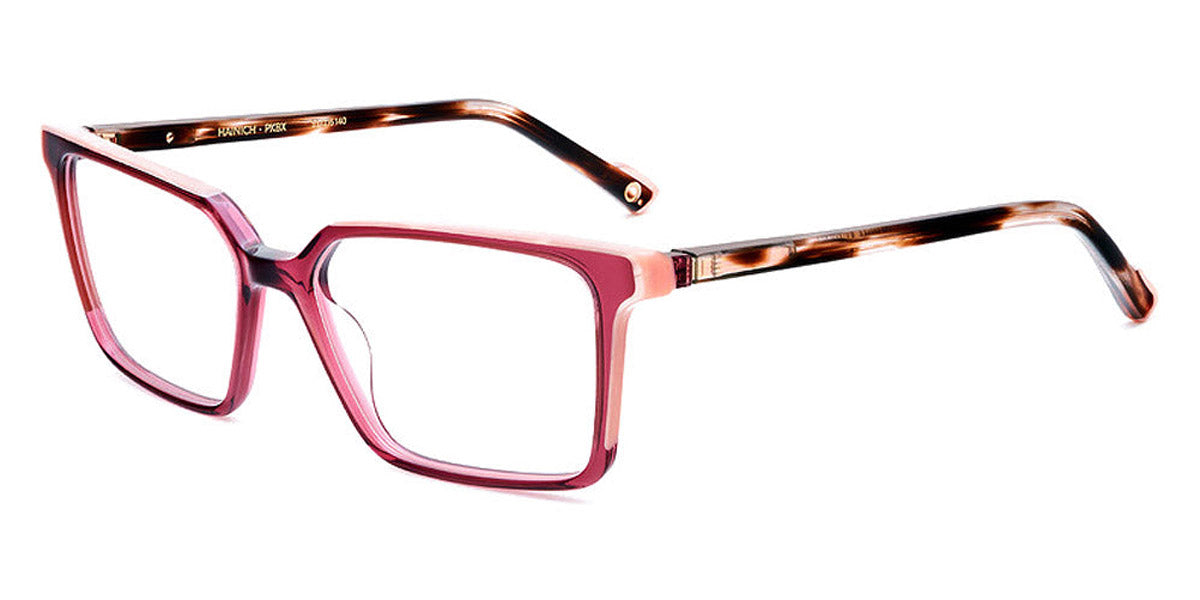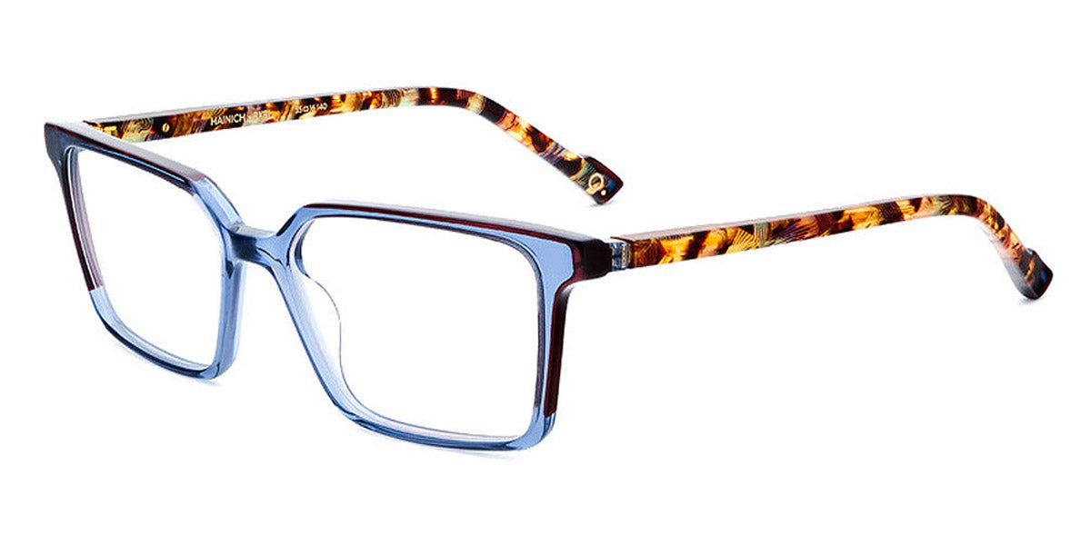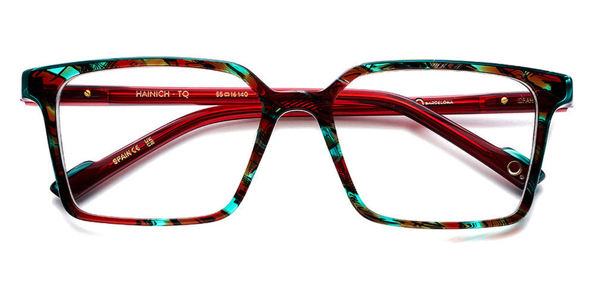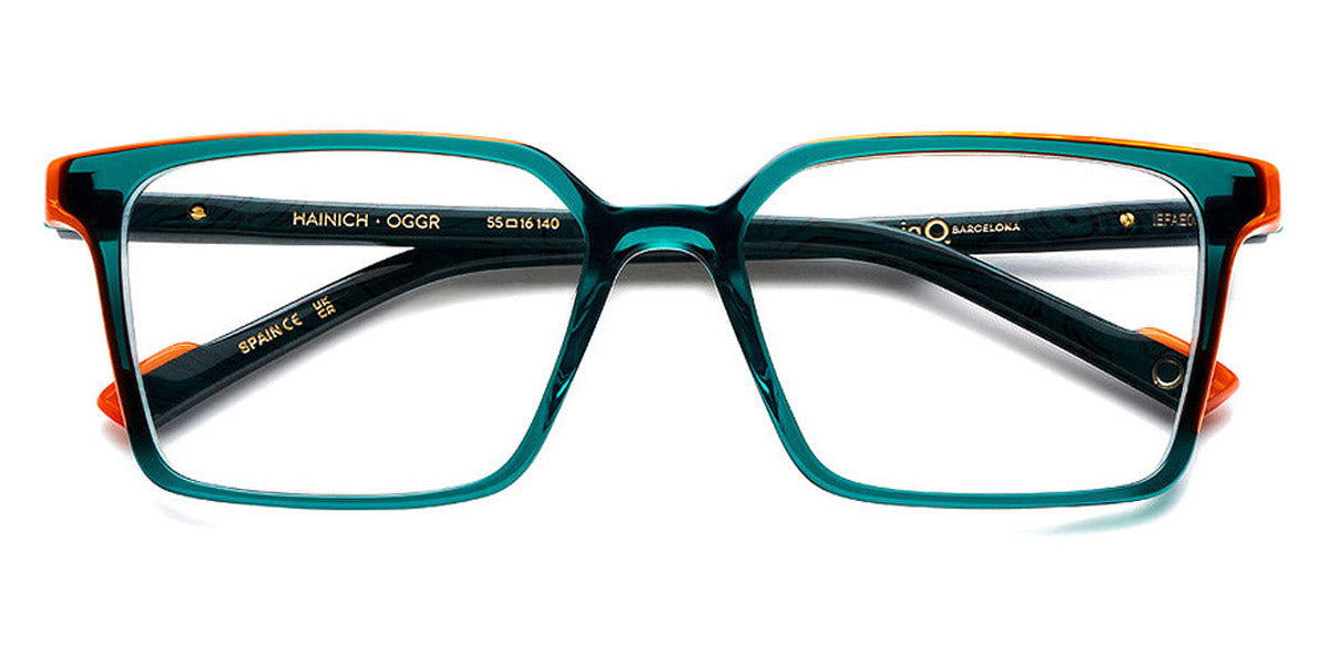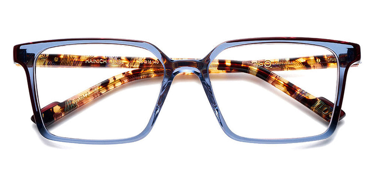 HAINICH Eyeglasses by Etnia Barcelona. Color: OGHV Gold/Havana, BXBL Maroon/Blue, PKBX Pink/Maroon, FUBL Fuchsia/Blue, BKZE Black, OGGR Gold/Green, TQ Turquoise, HVWH Havana/White, Size: 55-16-140. The HAINICH eyeglasses offer a minimalist, sleek aesthetic with a bold square frame. Made by hand from premium Mazzucchelli acetate, this model merges a modern, unobtrusive style with playful end pieces and whimsically colored temples. Lightweight and robust all at once, they sit comfortably on any nose and provide a comfortable fit regardless of your face shape. Go through your day confident and bright wearing the HAINICH.