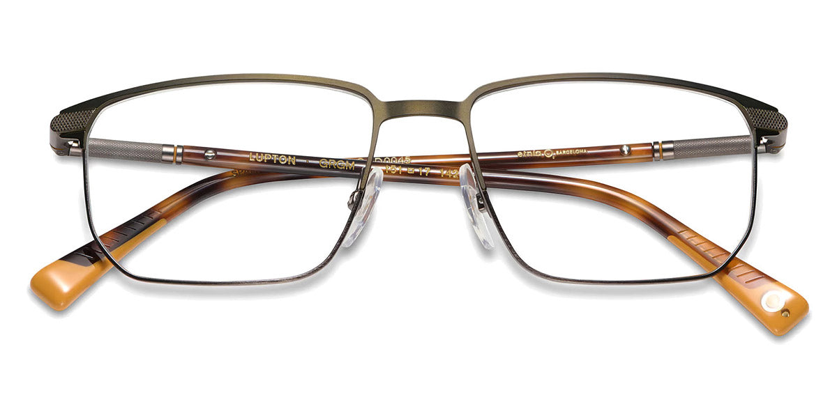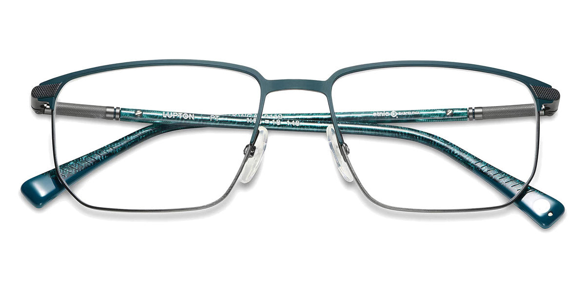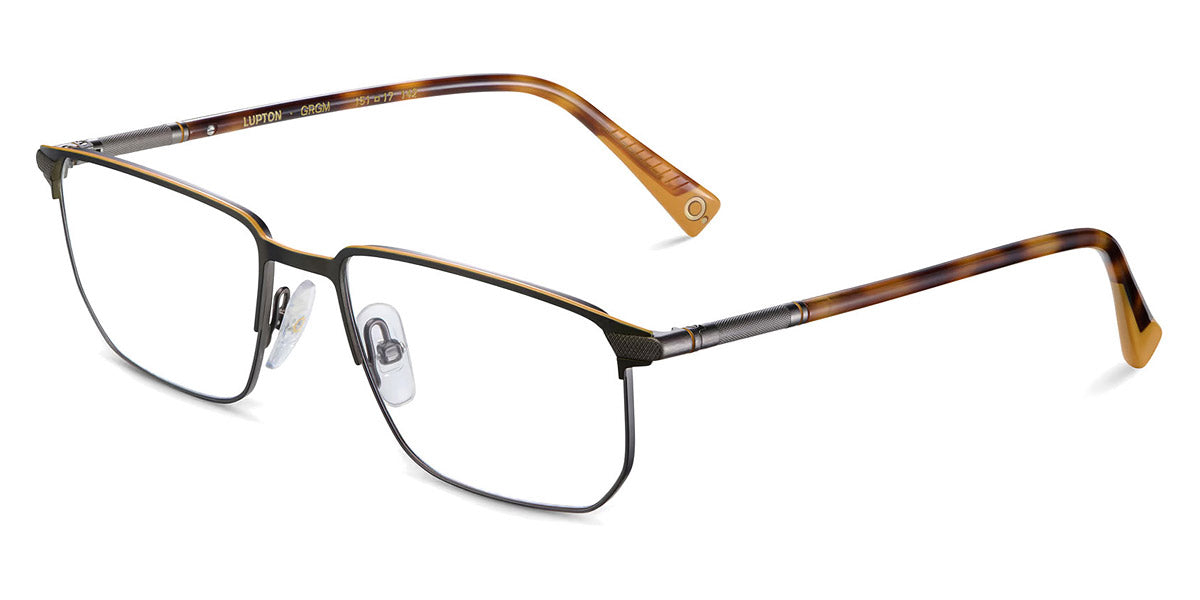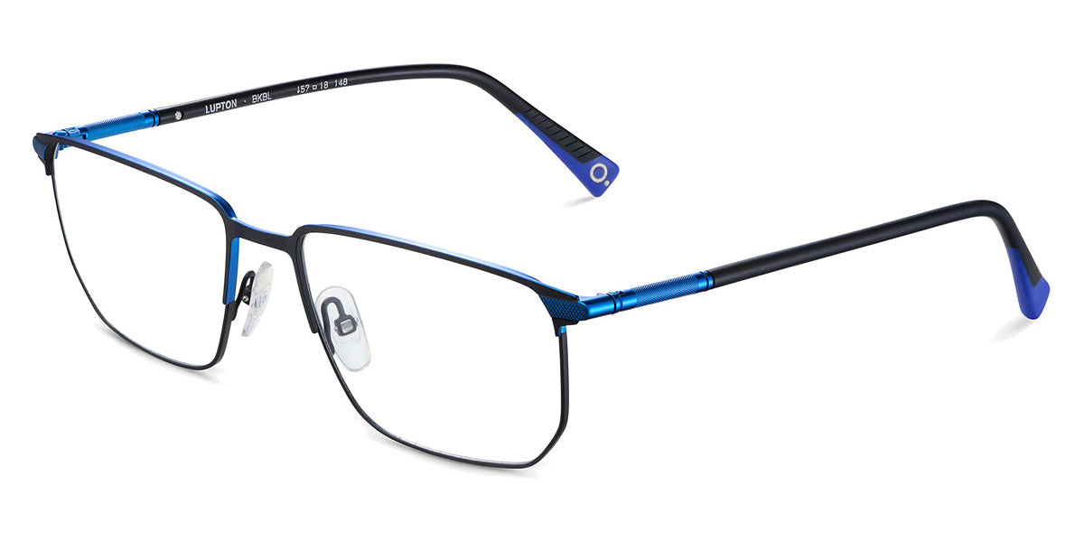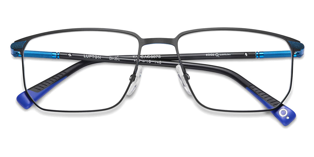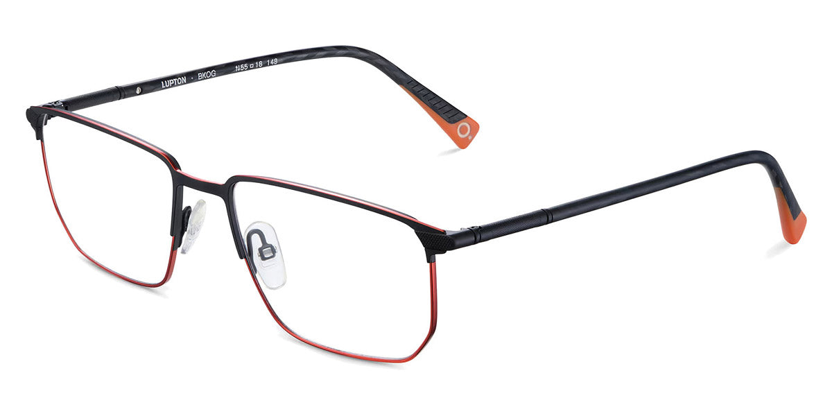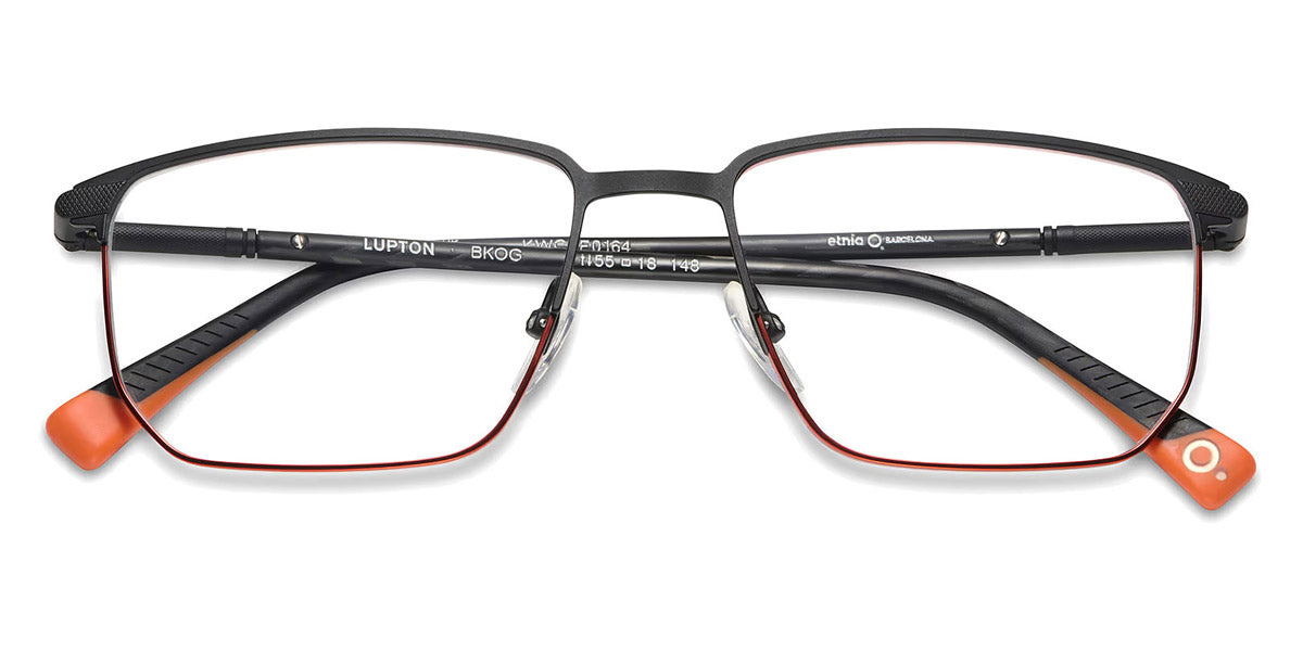 LUPTON Eyeglasses by Etnia Barcelona. Color: BKBL Black/Blue, BKOG Black/Orange, GRGM Green/Gunmetal, PT, Size: 51-17-142, 55-18-148, 57-18-148. Elegance comes easy with the LUPTON, where gentle rectangular frames meet whimsical acetate palettes on the temples. The delicate construction enhances the refined aesthetic of these frames while ensuring featherlight comfort. The premium mineral glass lenses keep your vision clear and sharp wherever you go. Offering both functionality and charm in every detail, the LUPTON eyeglasses bring a touch of playful sophistication to your everyday style.