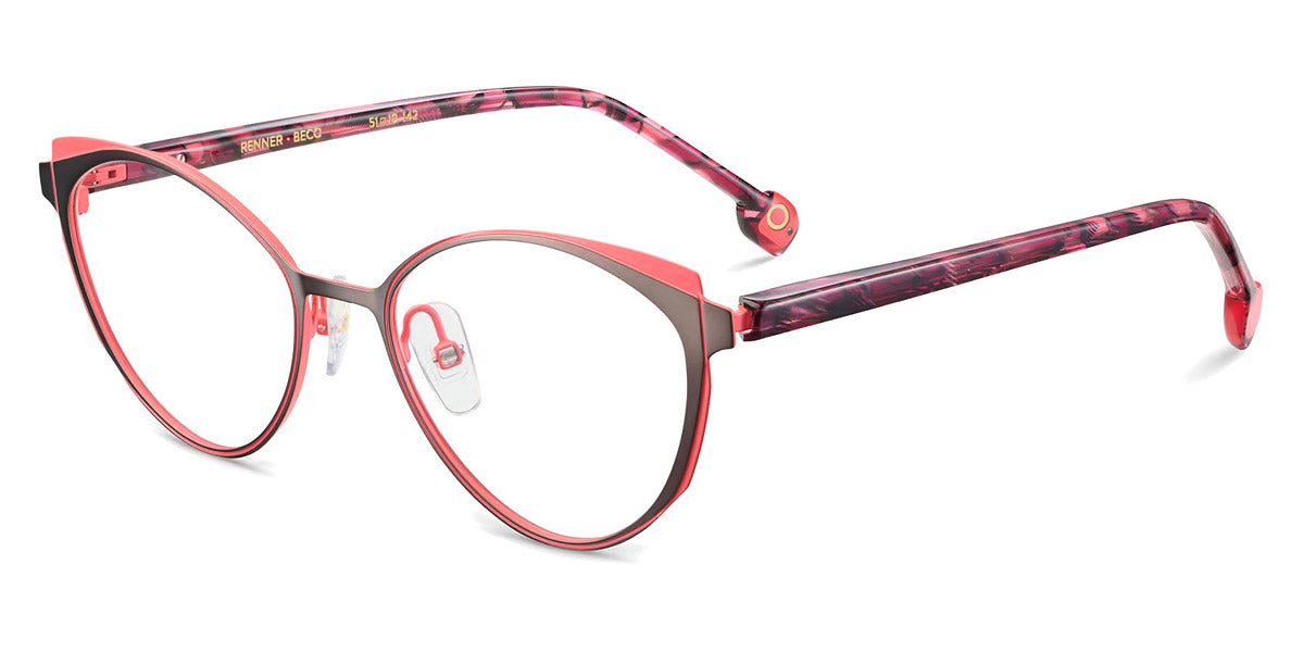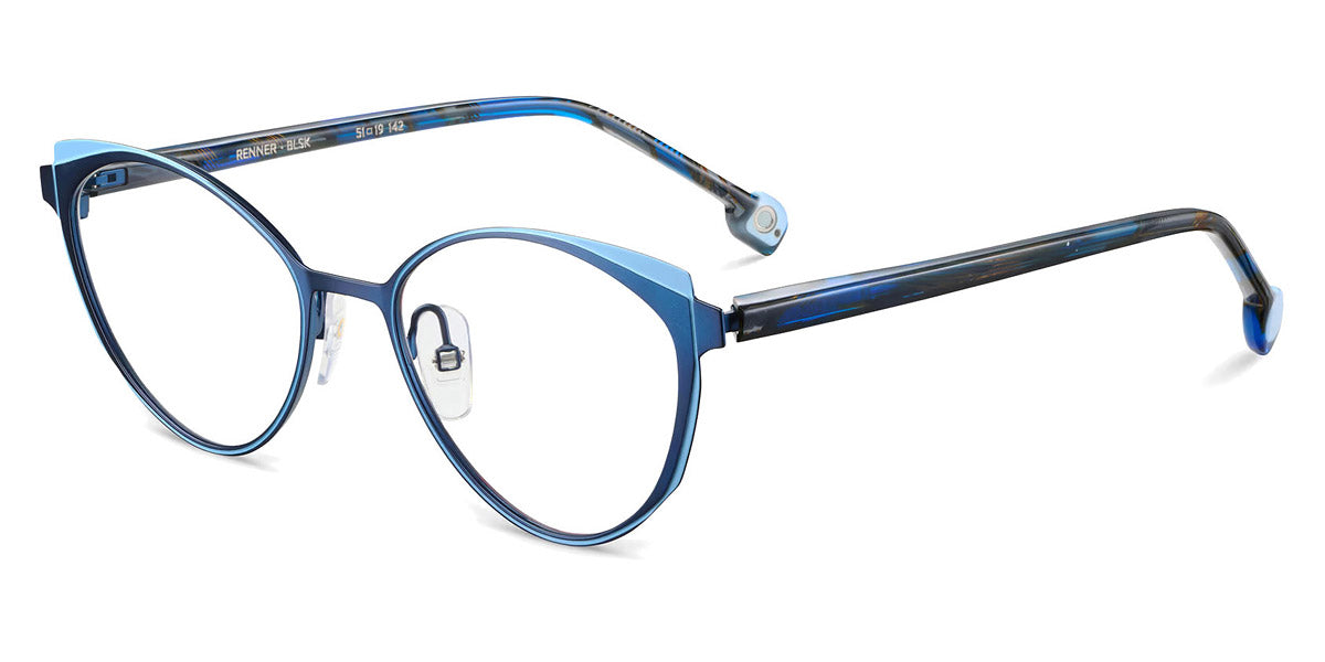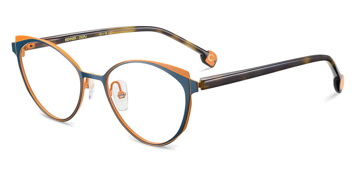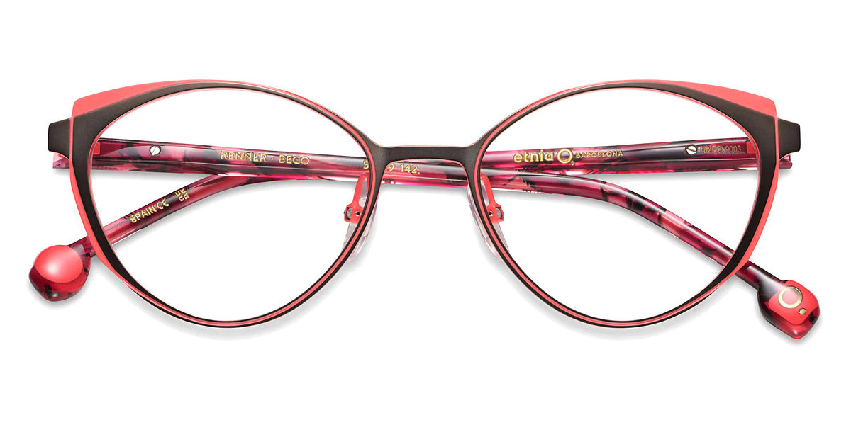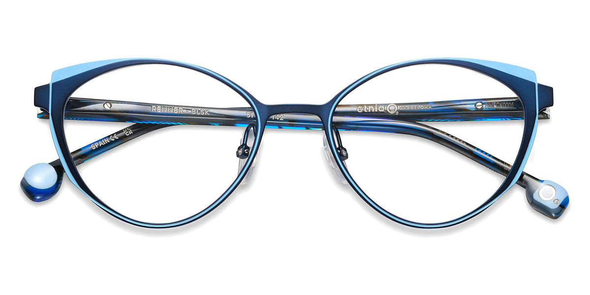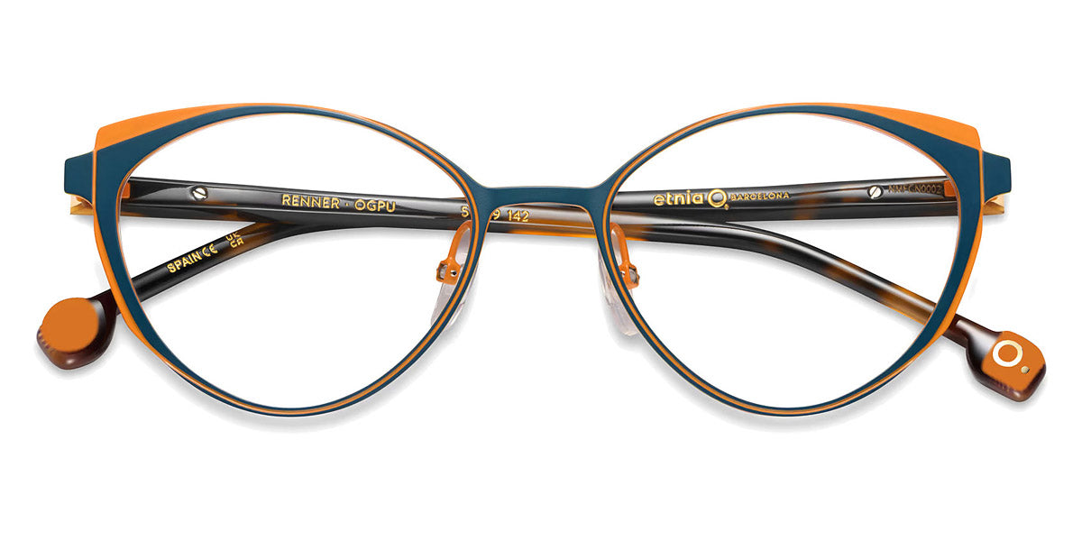RENNER Eyeglasses by Etnia Barcelona. Color: BECO, BLSK, TQOG Turquoise/Orange, WHZE White/Zebra, Size: 51-19-142. Dreamy and enchanting, the RENNER eyeglasses capture attention with their charming butterfly shape. The two-frame effect at the corners creates a striking contrast, while the playful palettes balance soft tones and whimsical patterns. Delicately sculpted, they offer a graceful, lightweight feel that never weighs you down. Add a touch of fluttering magic to your everyday eyewear with the RENNER.