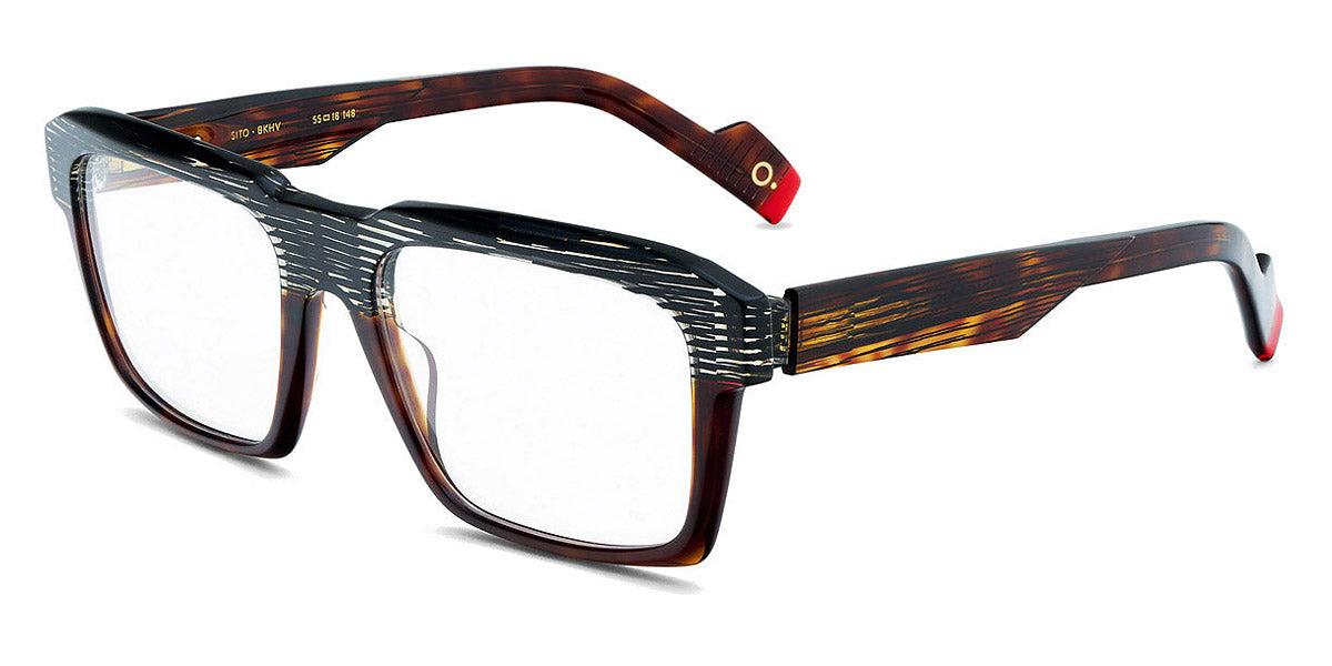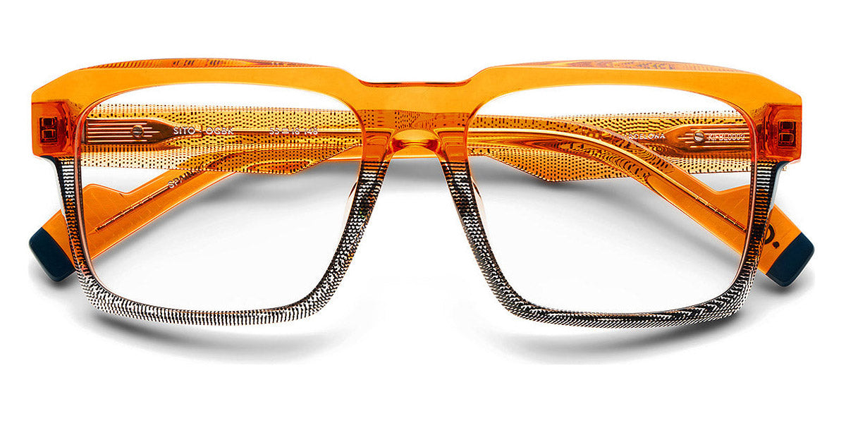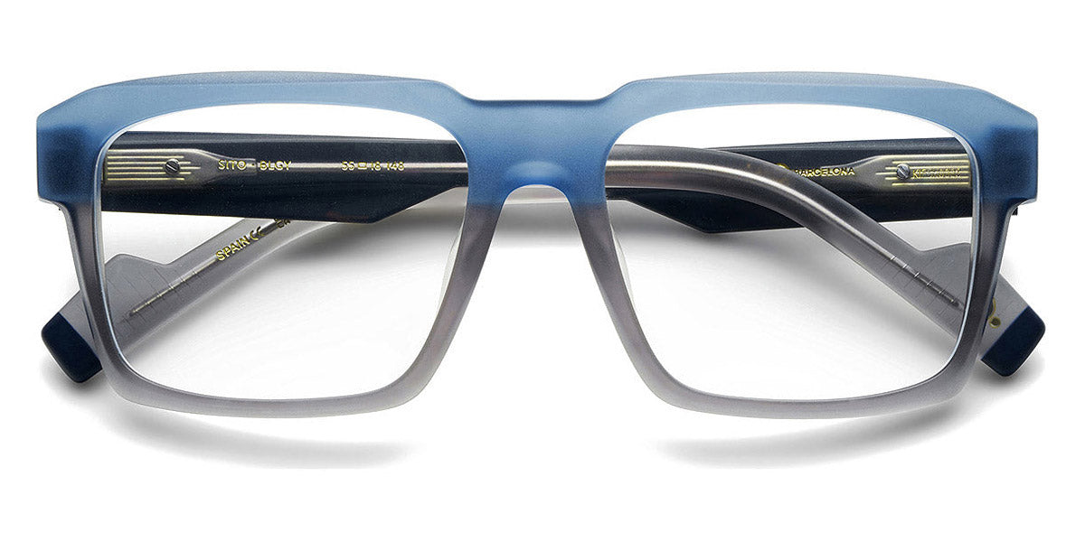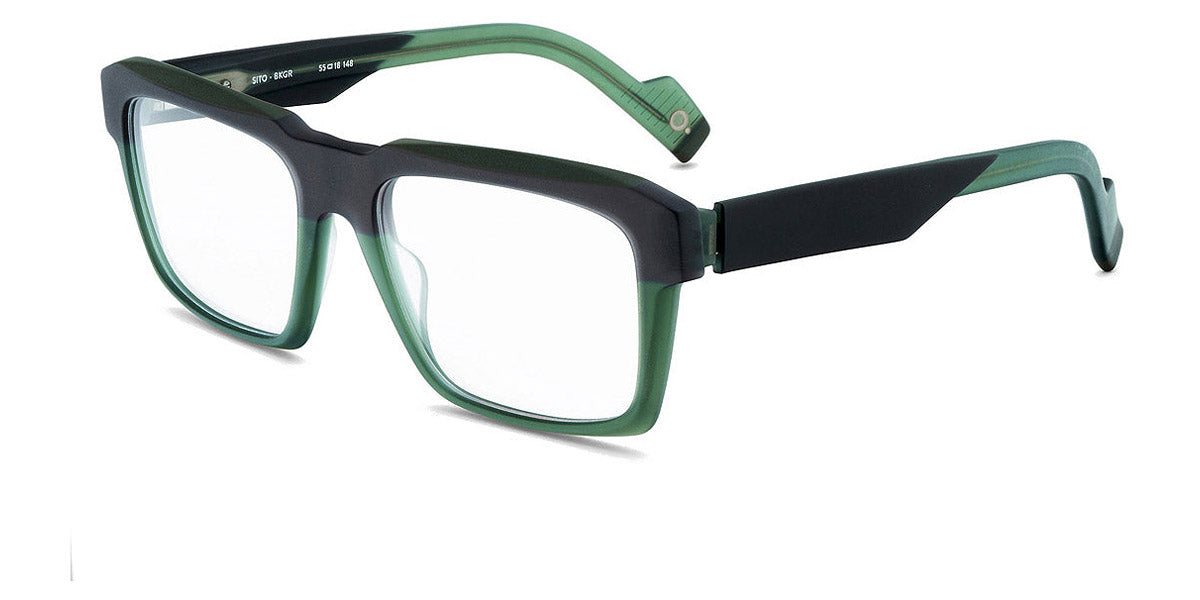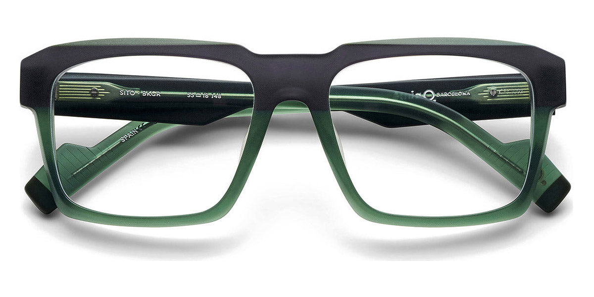 SITO Eyeglasses by Etnia Barcelona. Color: BKGR Black/Green, BKHV, BLGY Blue/Grey, OGBK, Size: 55-18-148. Modern and lively, the SITO eyeglasses reimagine the wayfarer with bright colors and bold details. The accentuated browline and vibrant dual-color acetate frame exude confidence and charm. A distinctive bridge design sets them apart, while the lightweight construction keeps you comfortable no matter how chunky these frames may look. Dynamic and versatile, the SITO is perfect for adding daring flair to any outfit.