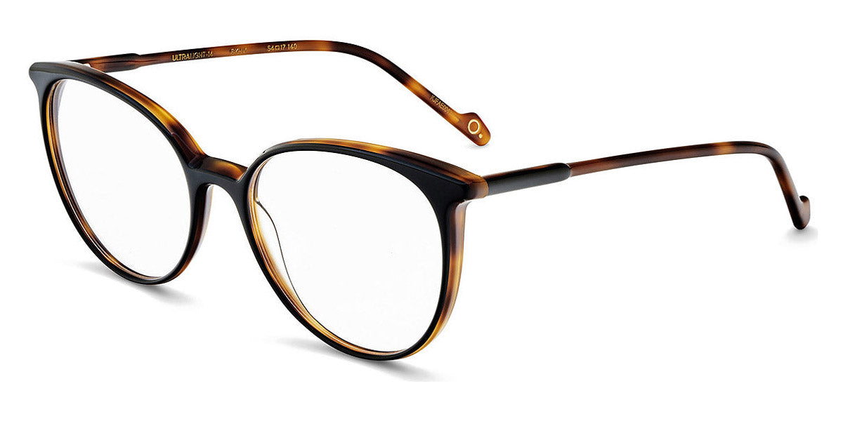 ULTRA LIGHT 14 Eyeglasses by Etnia Barcelona. Color: BKHV Black/Havana, BRGR Brown/Green, PKOG Pink/Orange, RDCL Red/Transparent, Size: 54-17-140. Meet the butterfly airiness and perfect smoothness encapsulated in crystal-clear Mazzucchelli acetate! With its slim, delicate frame and finely accented end pieces, the ULTRA LIGHT 14 seems to flutter on your face, bringing out the natural beauty of your features. With contours that feel as graceful as they look and just a bit of architectural touch at the temples, this model is perfect for those who seek refined charm with minimal weight.