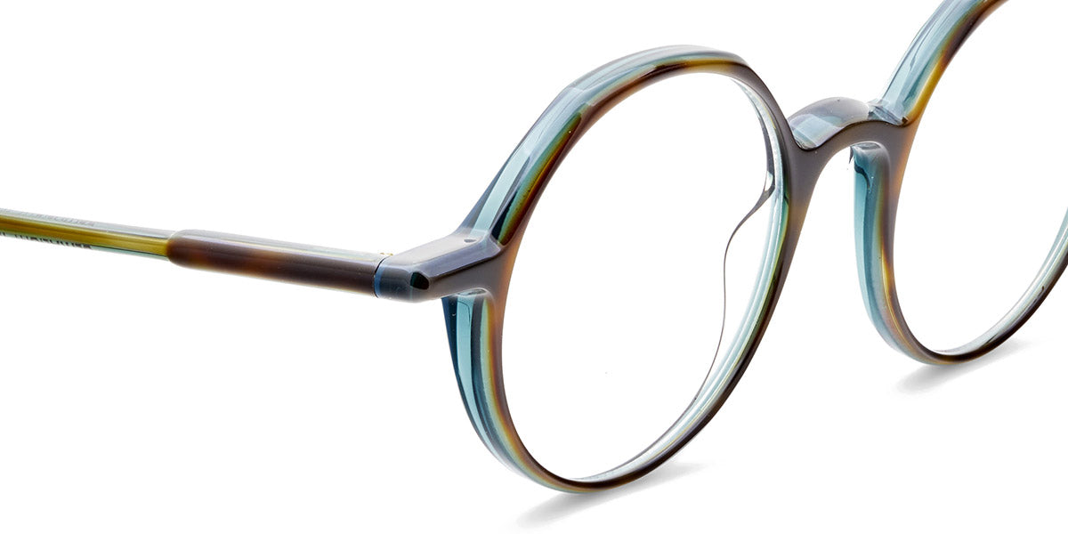 ULTRA LIGHT 17 Eyeglasses by Etnia Barcelona. Color: BL Blue, CL Transparent, HVGR Havana/Green, OG Orange, Size: 47-19-148. The ULTRA LIGHT 17 pantos offer gentle, rounded rims with intricate, almost architectural detailing in Etnia Barcelona’s iconic acetate. The translucent material shines with vibrant color, bringing out the splendor of every shade. A sculptural bridge meets whimsically designed temples to complete the refined silhouette. Lending a dash of boldness to the otherwise elegant and classic frame, the ULTRA LIGHT 17 redefines all things timeless and sophisticated.