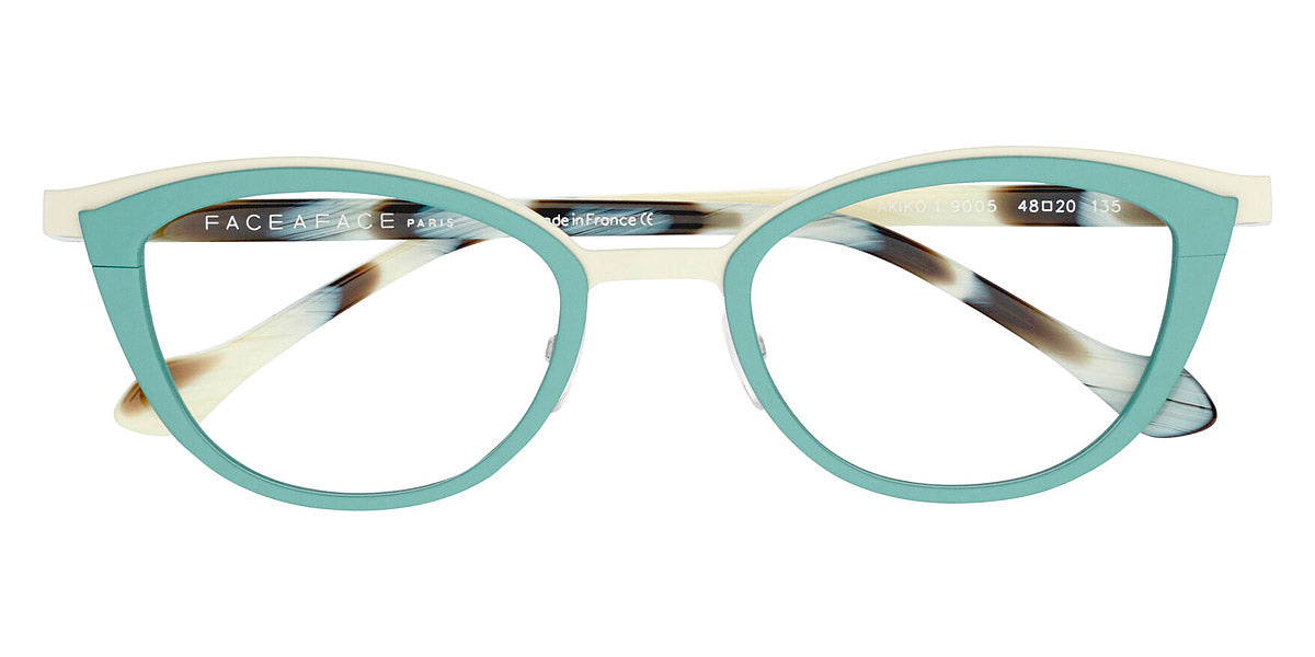 AKIKO 1 Eyeglasses by Face A Face. Color: Baltic Blue (9005), Size: 48-20-135. Audacious, artistic, extraordinary… FACE A FACE glasses are at the cutting edge of design. Every frame is meticulously crafted by artisans using only the highest-quality materials: from 100% organic acetate to space-grade titanium. The resulting glasses are durable, lightweight, flexible, hypoallergenic, and most important of all, comfortable. And once coated in the exclusive FACE A FACE color palette, they are nothing short of magic. Full of spirit, light and personality, the spectacles cultivate boldness and vitality.