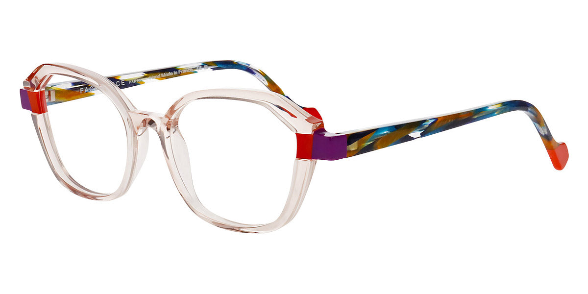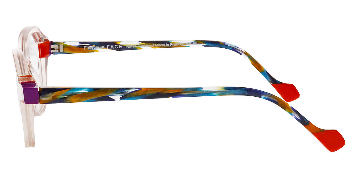 BLINK 2 Eyeglasses by Face A Face. Color: Havana Storm Tortoise (4861), Ink Blue (008), Peach Transparent (3064), Red Transparent Tortoise (1074), Transparent Striped Dark Green (1107), Violet Mauve Sombre (203), Size: 52-18-140. Audacious, artistic, extraordinary… FACE A FACE glasses are at the cutting edge of design. Every frame is meticulously crafted by artisans using only the highest-quality materials: from 100% organic acetate to space-grade titanium. The resulting glasses are durable, lightweight, flexible, hypoallergenic, and most important of all, comfortable. And once coated in the exclusive FACE A FACE color palette, they are nothing short of magic. Full of spirit, light and personality, the spectacles cultivate boldness and vitality.