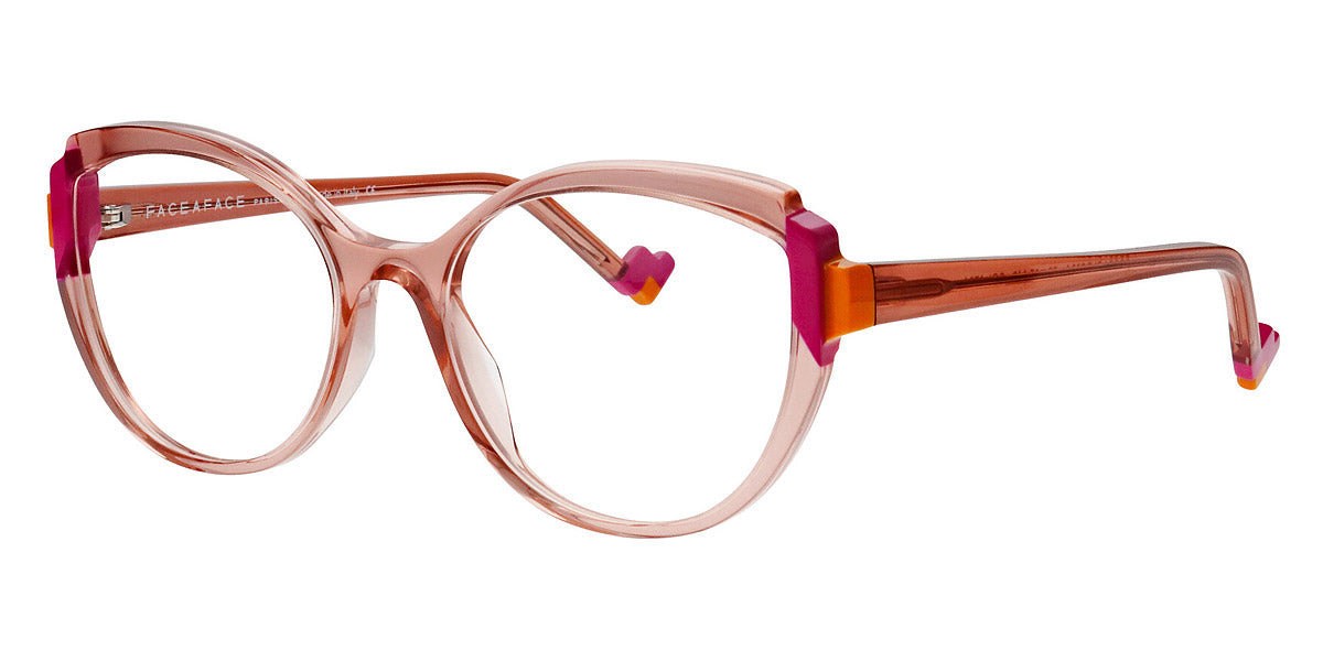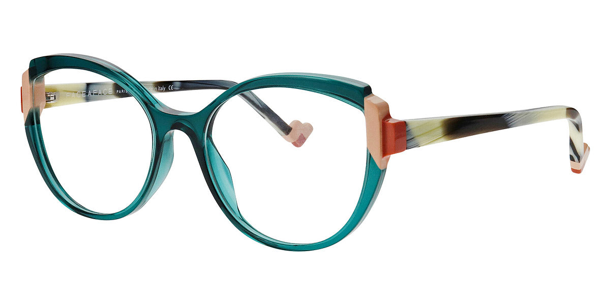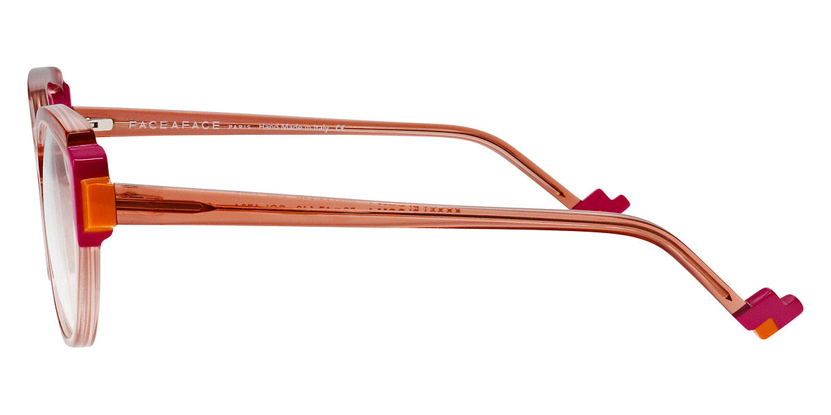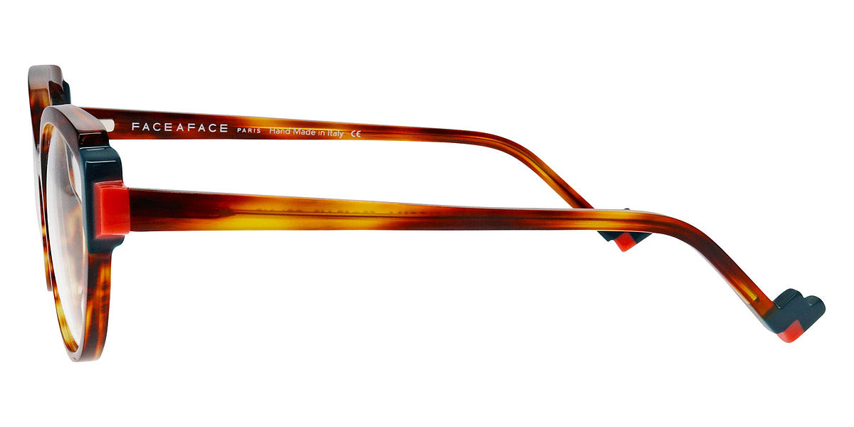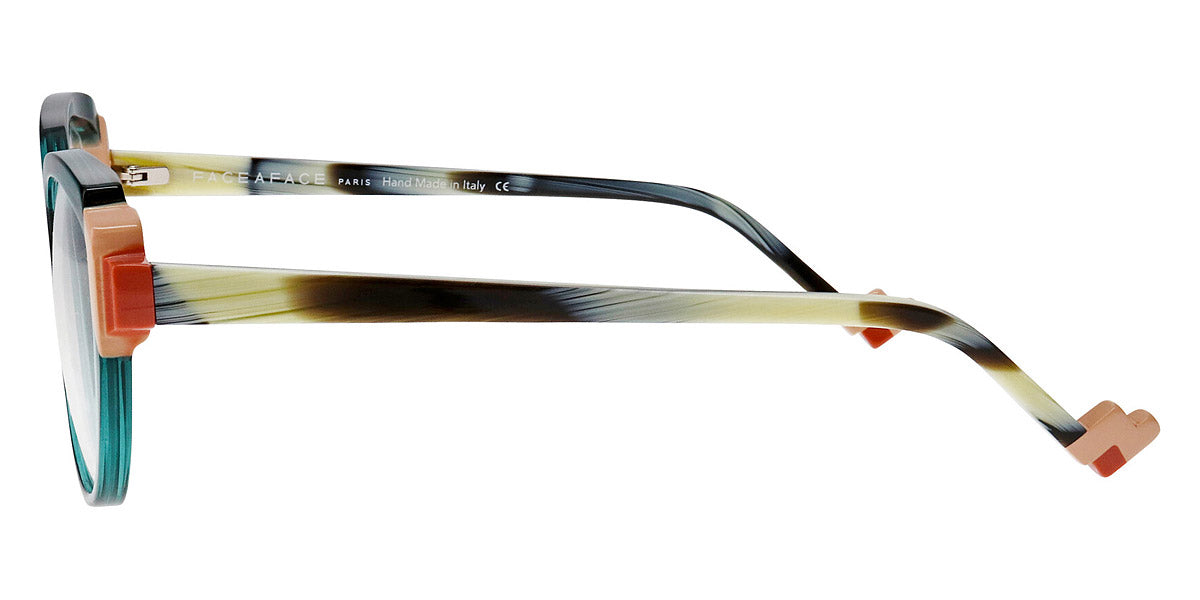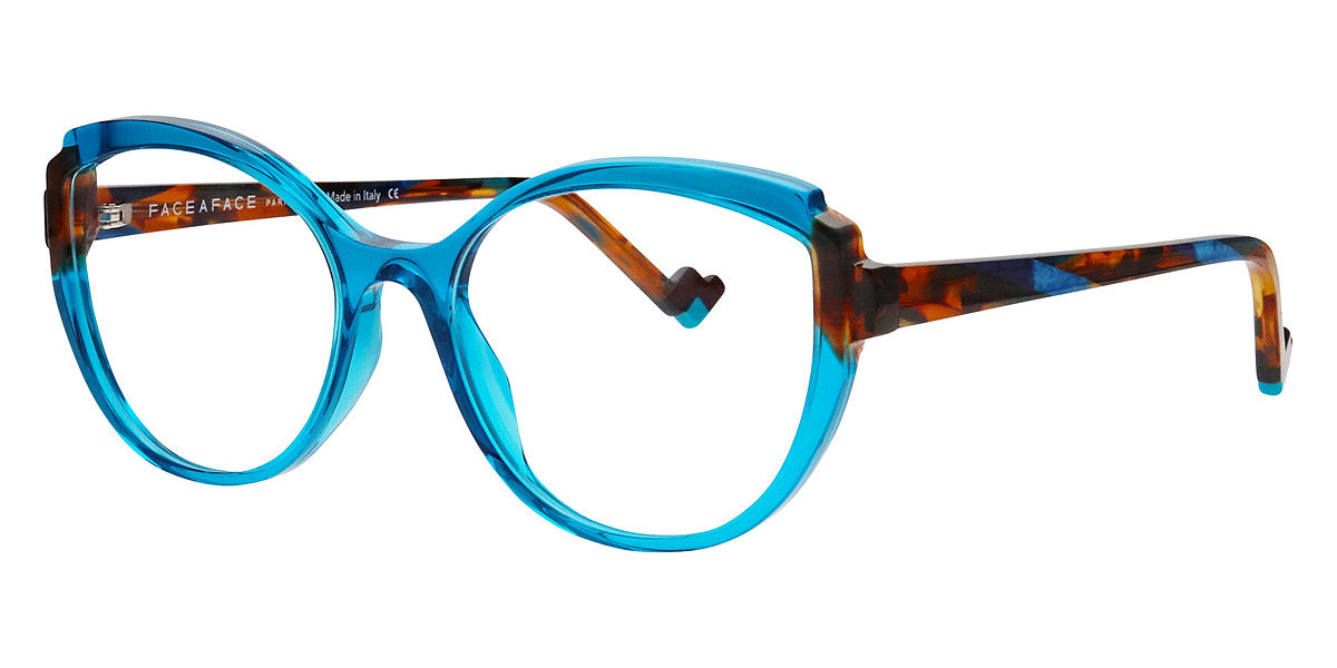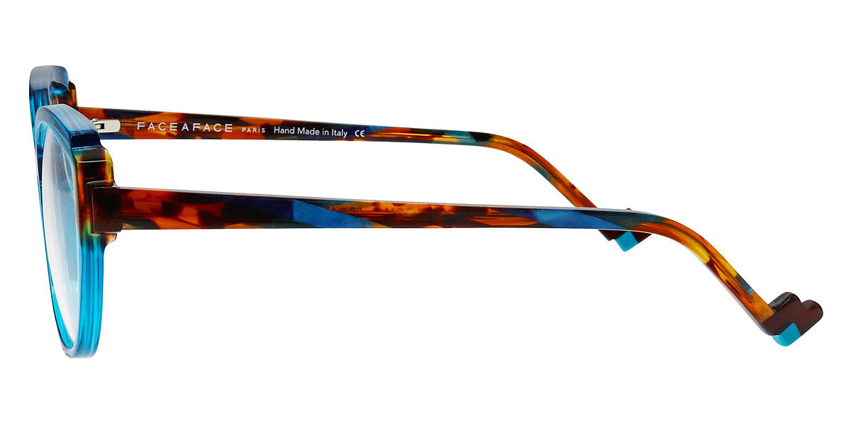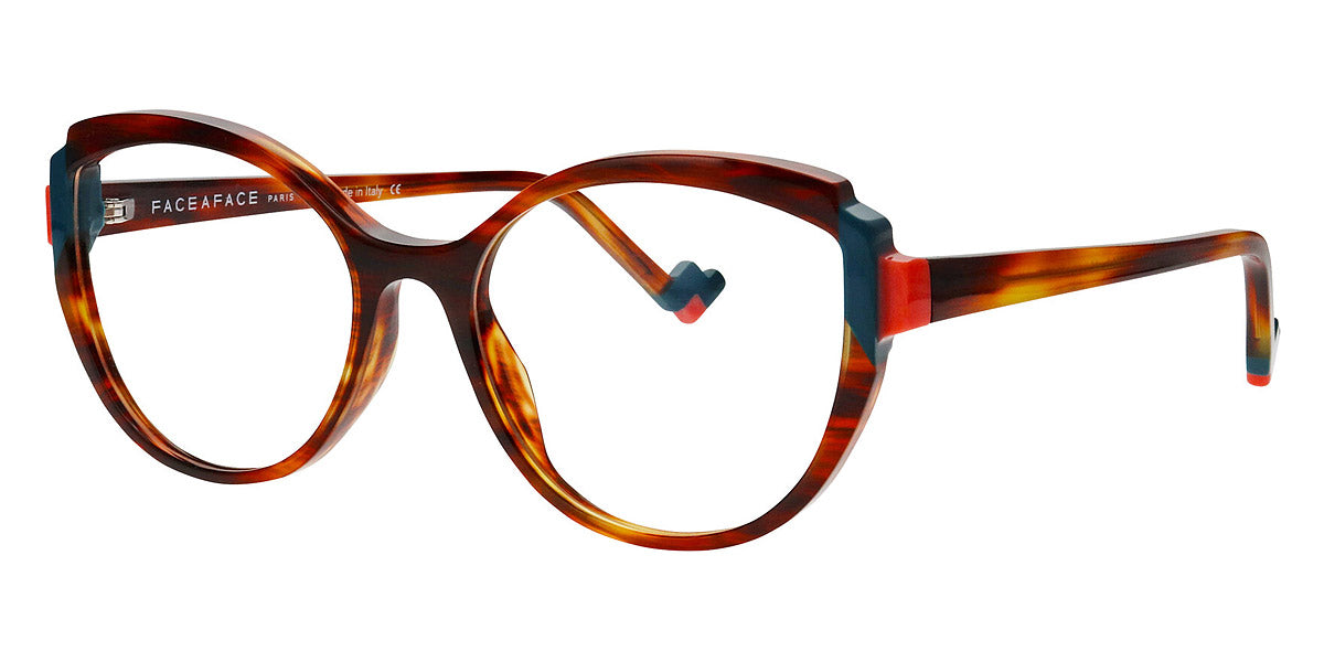 BOCCA BLOOM 1 Eyeglasses by Face A Face. Color: Brown Horn (167), Camouflage Pop (1324), Duck Blue (2045), Powdery Peach (1704), Purple Red (4023), Ultramarine Blue (665), Size: 52-17-140. Audacious, artistic, extraordinary… FACE A FACE glasses are at the cutting edge of design. Every frame is meticulously crafted by artisans using only the highest-quality materials: from 100% organic acetate to space-grade titanium. The resulting glasses are durable, lightweight, flexible, hypoallergenic, and most important of all, comfortable. And once coated in the exclusive FACE A FACE color palette, they are nothing short of magic. Full of spirit, light and personality, the spectacles cultivate boldness and vitality.