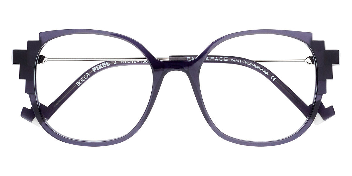BOCCA PIXEL 2 Eyeglasses by Face A Face. Color: Almond Green/Gray Degrade (4901), Dark Mauve (203), Frozen Bordeaux Degrade (1102), Pearly Pink Camouflage (6092), Pink Blush Crystal (3006), Transparent Brown Flakes and Crystal (3506), Size: 51-18-135. Audacious, artistic, extraordinary… FACE A FACE glasses are at the cutting edge of design. Every frame is meticulously crafted by artisans using only the highest-quality materials: from 100% organic acetate to space-grade titanium. The resulting glasses are durable, lightweight, flexible, hypoallergenic, and most important of all, comfortable. And once coated in the exclusive FACE A FACE color palette, they are nothing short of magic. Full of spirit, light and personality, the spectacles cultivate boldness and vitality.