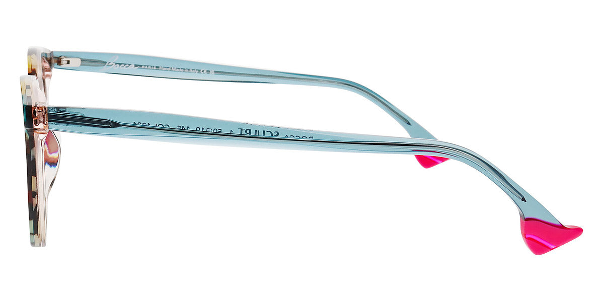 BOCCA SCULPT 1 Eyeglasses by Face A Face. Color: Blue Marble (5541), Camouflage Pop (1324), Gradient Lilac Vertical (8001), Red Transparent/Flash Red (2216), Transparent Blue Green (12184), Transparent Dark Gray/Pink Nude Opaque (0096), Size: 50-19-145. Audacious, artistic, extraordinary… FACE A FACE glasses are at the cutting edge of design. Every frame is meticulously crafted by artisans using only the highest-quality materials: from 100% organic acetate to space-grade titanium. The resulting glasses are durable, lightweight, flexible, hypoallergenic, and most important of all, comfortable. And once coated in the exclusive FACE A FACE color palette, they are nothing short of magic. Full of spirit, light and personality, the spectacles cultivate boldness and vitality.