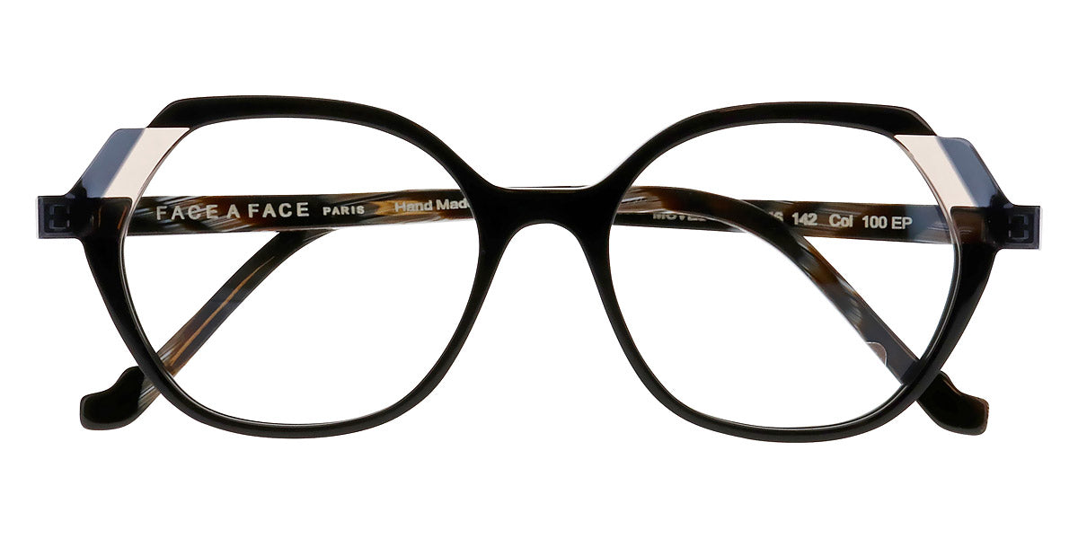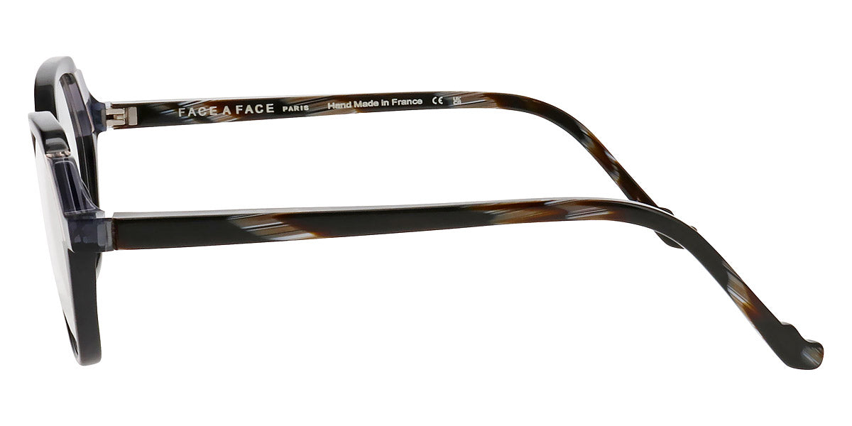 MOVES 1 Eyeglasses by Face A Face. Color: Black (100), Blue Marble (5541), Camouflage Pop (1324), Gray Blue Petrol Transparent (3207), Mandarin Crystal (0032), Striped Raspberry (8256), Size: 50-16-142. Audacious, artistic, extraordinary… FACE A FACE glasses are at the cutting edge of design. Every frame is meticulously crafted by artisans using only the highest-quality materials: from 100% organic acetate to space-grade titanium. The resulting glasses are durable, lightweight, flexible, hypoallergenic, and most important of all, comfortable. And once coated in the exclusive FACE A FACE color palette, they are nothing short of magic. Full of spirit, light and personality, the spectacles cultivate boldness and vitality.