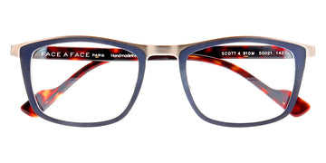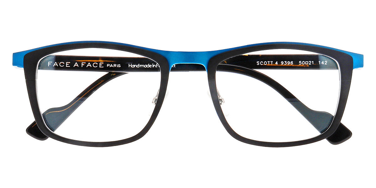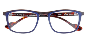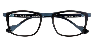SCOTT 4 Eyeglasses by Face A Face. Color: Blue Gray (9447), Blue Marine Velours (9122m), Satin Turquoise (9396), Size: 50-21-142. Audacious, artistic, extraordinary… FACE A FACE glasses are at the cutting edge of design. Every frame is meticulously crafted by artisans using only the highest-quality materials: from 100% organic acetate to space-grade titanium. The resulting glasses are durable, lightweight, flexible, hypoallergenic, and most important of all, comfortable. And once coated in the exclusive FACE A FACE color palette, they are nothing short of magic. Full of spirit, light and personality, the spectacles cultivate boldness and vitality.
