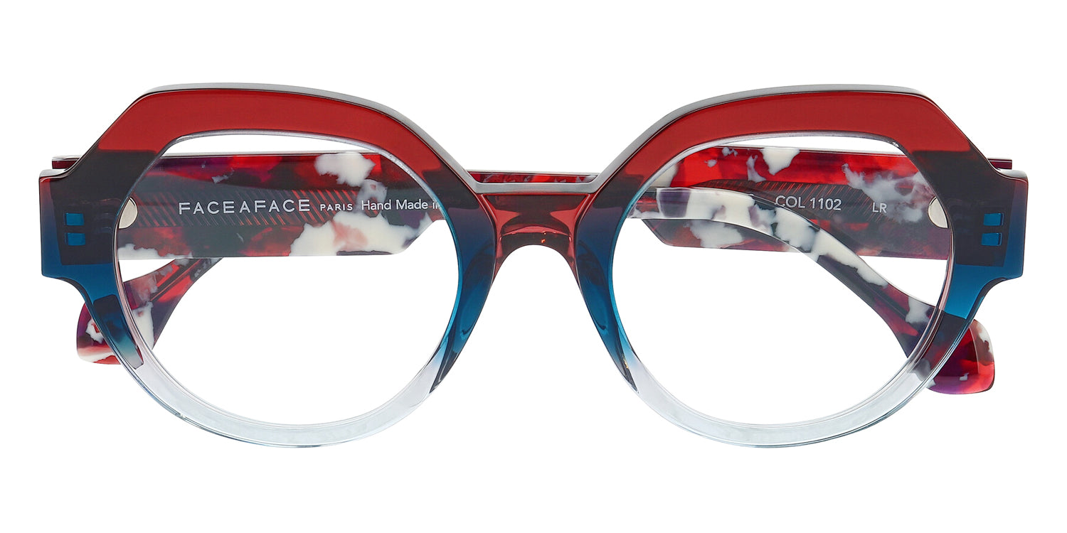 TIES 2 Eyeglasses by Face A Face. Material: Acetate, Color: Ultra Blue Transparent, Cassis Tortoise, Frozen Bordeaux Degrade, Mauve, Black, Crystal Green Rose, Size: 51-20-140.