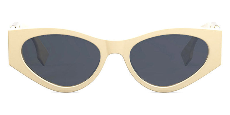 FE40049I Sunglasses by Fendi. Shape: Cat eye, Material: Acetate, Color: Shiny Black / Smoke, Shiny Solid Ivory / Blue, Shiny Dark Havana / Brown, Size: 54-17-145. The Fendi glasses are just the perfect way to add a touch of luxury to any outfit. Crafted in Italy with impeccable precision utilizing premium-grade acetate and metal, these pieces are the epitome of luxury: eccentric yet charming shapes, rich finishes and bold colors. Each frame features exquisite signature detailing. From legendary double "F" logo and iconic FF Baguette motif, to modernized O’Lock logo and Fendi Brush lettering. The hues are usually mixed for creation of new shades (caramel, cream, orange). Different combinations of textures along with bright and contrast colors make Fendi glasses stand out in the crowd. In addition to their outstanding design, the frames are lightweight and comfortable, with adjustable nose pads ensuring a perfect fit.