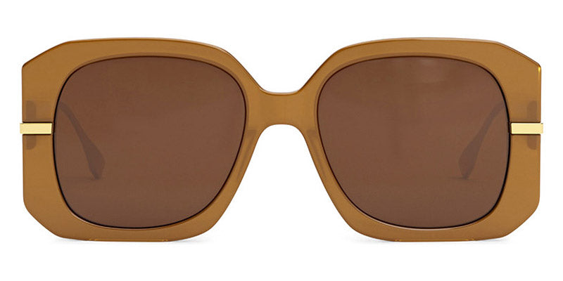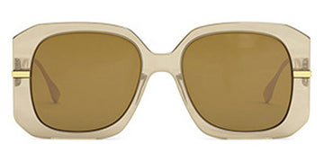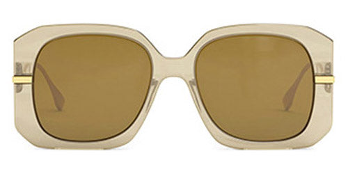 FE40065I Sunglasses by Fendi. Shape: Geometric, Material: Acetate, Color: Shiny Transparent Beige / Khaki, Shiny Solid Black / Smoke, Shiny Milky Amber / Brown, Size: 55-18-140. The Fendi glasses are just the perfect way to add a touch of luxury to any outfit. Crafted in Italy with impeccable precision utilizing premium-grade acetate and metal, these pieces are the epitome of luxury: eccentric yet charming shapes, rich finishes and bold colors. Each frame features exquisite signature detailing. From legendary double "F" logo and iconic FF Baguette motif, to modernized O’Lock logo and Fendi Brush lettering. The hues are usually mixed for creation of new shades (caramel, cream, orange). Different combinations of textures along with bright and contrast colors make Fendi glasses stand out in the crowd. In addition to their outstanding design, the frames are lightweight and comfortable, with adjustable nose pads ensuring a perfect fit.