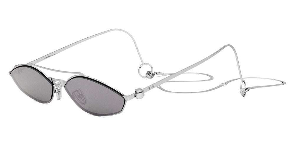 FE40114U-Y Sunglasses by Fendi. Shape: Cat-Eye, Material: Metal, Color: Shiny Palladium / Smoke with White Mirror, Size: 57-14-155. The Fendi glasses are just the perfect way to add a touch of luxury to any outfit. Crafted in Italy with impeccable precision utilizing premium-grade acetate and metal, these pieces are the epitome of luxury: eccentric yet charming shapes, rich finishes and bold colors. Each frame features exquisite signature detailing. From legendary double "F" logo and iconic FF Baguette motif, to modernized O’Lock logo and Fendi Brush lettering. The hues are usually mixed for creation of new shades (caramel, cream, orange). Different combinations of textures along with bright and contrast colors make Fendi glasses stand out in the crowd. In addition to their outstanding design, the frames are lightweight and comfortable, with adjustable nose pads ensuring a perfect fit.