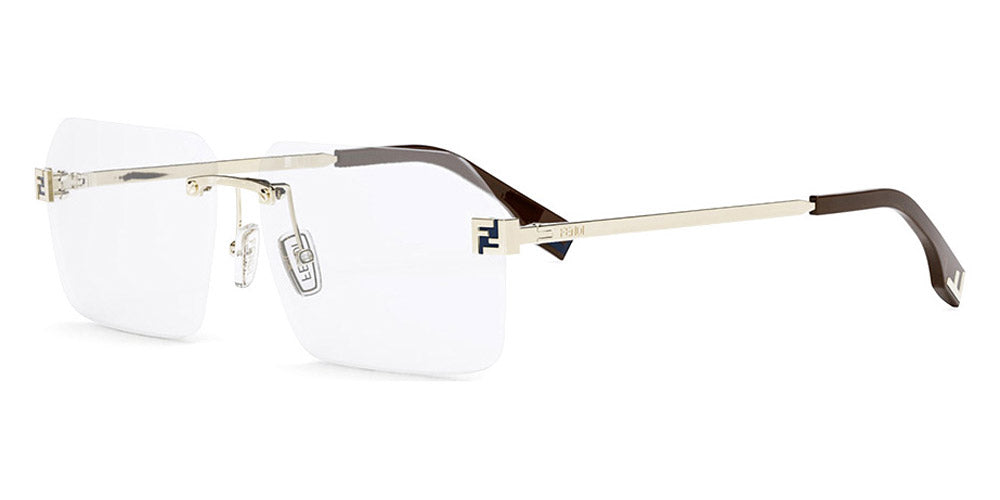 FE50035U Eyeglasses by Fendi. Shape: Geometric, Material: Metal, Color: Shiny Gold, Shiny Silver, Shiny Black Gold, Shiny Gold 2, Size: 59-13-145. The Fendi glasses are just the perfect way to add a touch of luxury to any outfit. Crafted in Italy with impeccable precision utilizing premium-grade acetate and metal, these pieces are the epitome of luxury: eccentric yet charming shapes, rich finishes and bold colors. Each frame features exquisite signature detailing. From legendary double "F" logo and iconic FF Baguette motif, to modernized O’Lock logo and Fendi Brush lettering. The hues are usually mixed for creation of new shades (caramel, cream, orange). Different combinations of textures along with bright and contrast colors make Fendi glasses stand out in the crowd. In addition to their outstanding design, the frames are lightweight and comfortable, with adjustable nose pads ensuring a perfect fit.