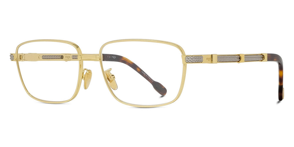 FG50040U Eyeglasses by Fred. Color: Shiny Endura Gold, Matte Black, Size: 57-16-150. If you’re looking for truly outstanding eyewear pieces, the FRED Paris glasses will meet all your needs. Each frame showcases the brand’s passion for contemporary glamor and sparkling, relaxed elegance. The glasses feature subtle touches of diamonds, gemstones, and other details that echo the iconic hallmarks of the brand: the nautical cable, marine carabiner, lemniscate, buckle in a figure of 8, and other unique, authentic elements. By combining premium materials with Italian craftsmanship, FRED Paris gives birth to unrivaled jewelry creations, designed for driven and passionate personalities.