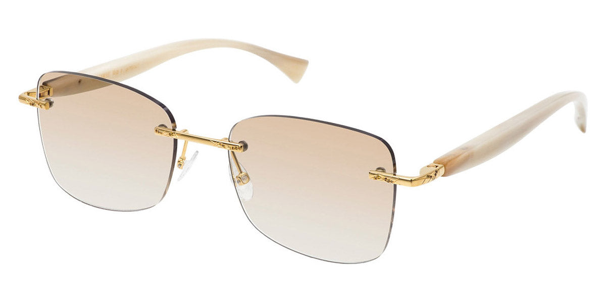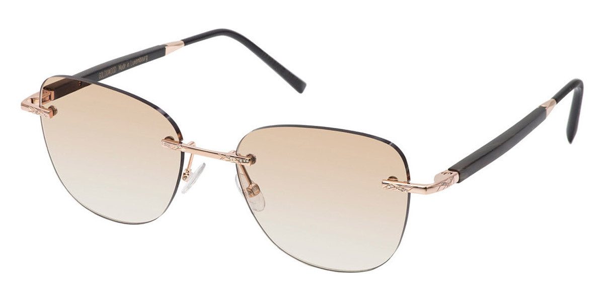 DUCHESSE 11 Sunglasses by Gold & Wood. Color: D.11.03.Cm24 Pink Gold (16,29 Gr Approx.) - 30 White Brilliant Cut Diamonds, Dc.12.05.Cb40 Yellow Gold (16,29 Gr Approx.) - 30 Cognac Brilliant Cut Diamonds. If you are hunting for glasses that turn heads, consider Gold & Wood eyewear! Handcrafted from the finest materials, like exotic woods, buffalo horn and precious metals, the frames not only offer incomparable quality and style, but they also provide a unique level of comfort due to their weightlessness – making them perfect for those who wear glasses all day long. Each Gold & Wood frame is carefully crafted by hand focusing on creativity and innovation. From the sketch to the frame, dozens of technical steps follow each other to give life to a real piece-of-art. Overall, Gold & Wood is a brand that is synonymous with quality and luxury. The Gold & Wood frames are a testament to the brand's commitment to craftsmanship, innovation, and attention to detail.