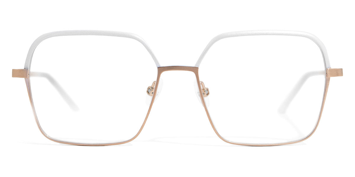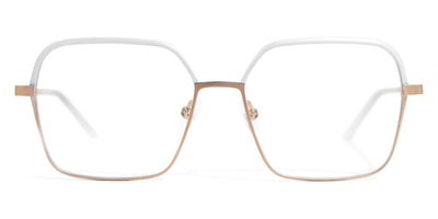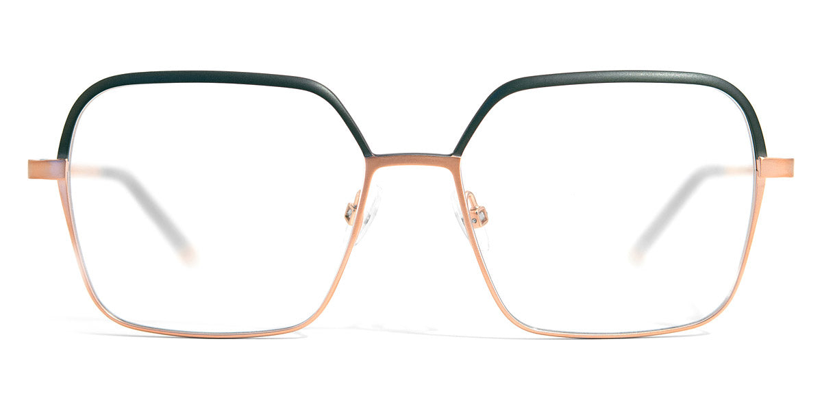 Livi Eyeglasses by Gotti. Color: Black/Copper, Dark Green/Copper, Rose/Gold Brushed, White/Gold Brushed, Size: 54-15-137. Stylish and elegant, Livi is a frame that embraces contemporary design with a touch of architectural flair. The angular silhouette exudes confidence and individuality, making it a perfect choice for those who embrace bold fashion choices. The fine metal construction ensures durability without compromising on comfort, while the interplay of colors adds depth and character. Livi is more than just eyewear; it's a statement piece that speaks volumes about self-assured style and impeccable taste. Elevate your look with Livi, and step into a world where bold design meets exceptional craftsmanship.