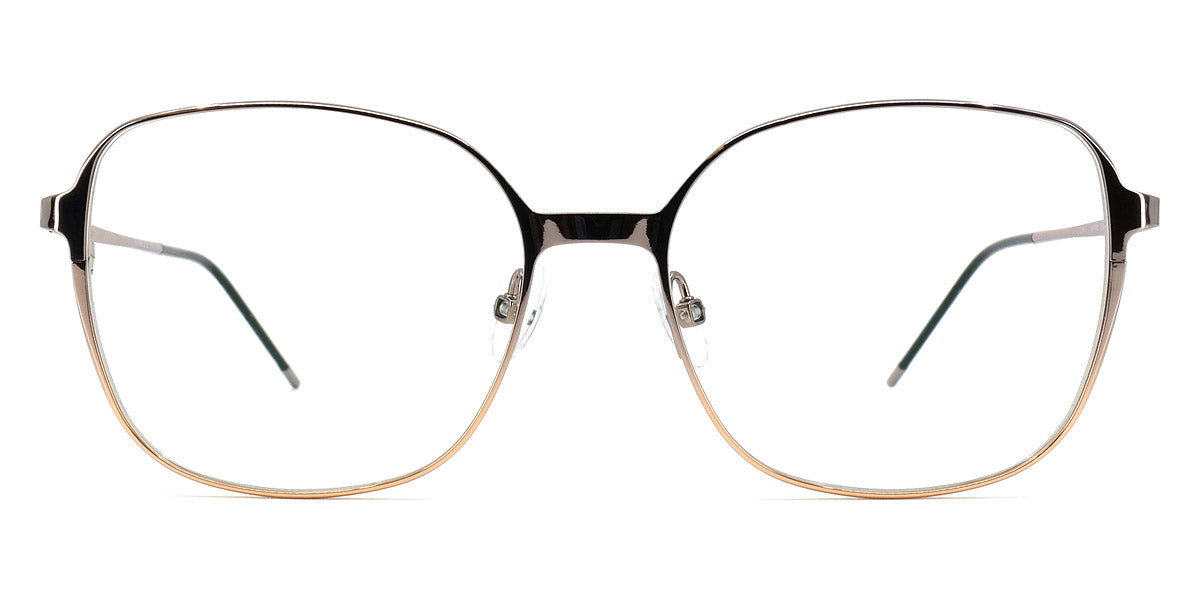 Lowe Eyeglasses by Gotti. Color: Brown Matte/Gold, Pista/Gold Brushed, Rose-Gold Brushed, Silver/Copper Metal Shiny, Violet Blue/Bronze Metallic Shiny, Violet/Apricot Metal Shiny, Size: 54-16-145. The Lowe glasses by Gotti redefine modern sophistication. The fine metal frame boasts a refined rectangular shape, exuding a subtle yet commanding presence. The combination of matte and polished finishes adds depth and character, while the ultra-thin temples provide a comfortable fit. These glasses are a testament to Gotti's commitment to blending timeless design with innovative materials. Elevate your everyday style with Lowe, and experience the perfect harmony of form and function.