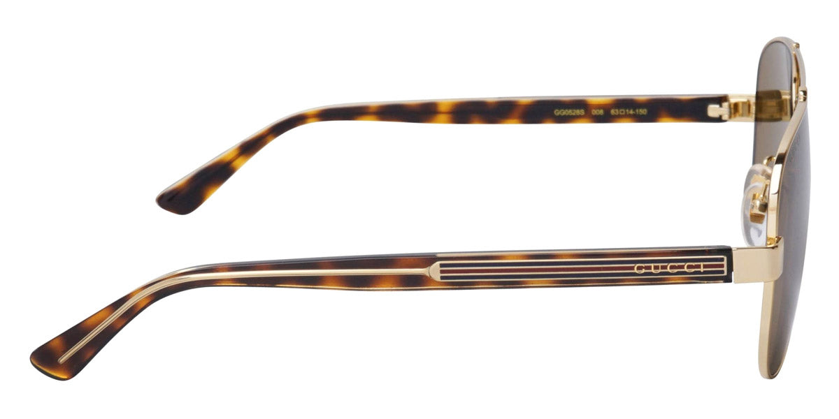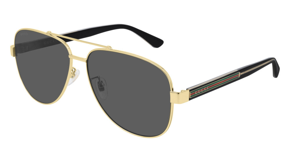 GG0528S Sunglasses by Gucci. Color: Crystal/Gold, Gold/Crystal, Gunmetal/Crystal, Size: 63-14-150. Gucci glasses are glamorous and chic, with bold contours and exaggerated volumes, which are ultimate forms of self-expression. Inspired by the vintage era, the reinterpreted iconic eyewear silhouettes are embellished with elaborate decorations and bright colors. Each and every design represents the pinnacle of Italian craftsmanship and is unsurpassed for its quality and attention to detail. Every new collection is a range of striking shapes and colors; an outstanding mix of playful vibes with retro undertones.