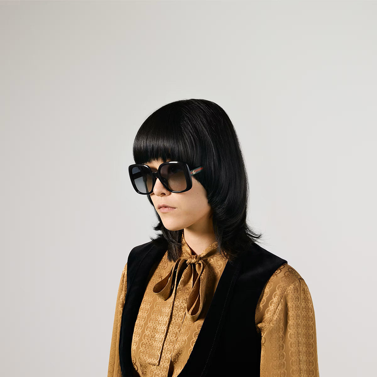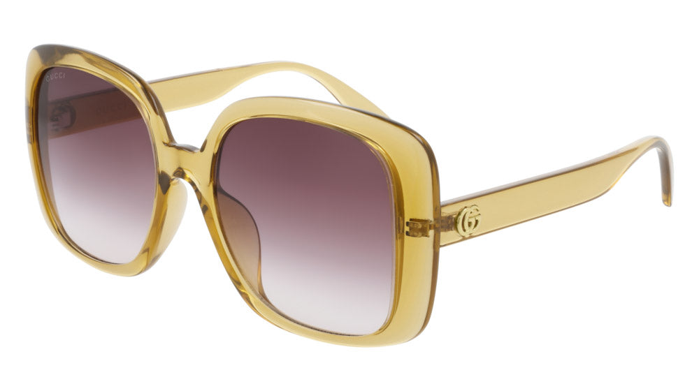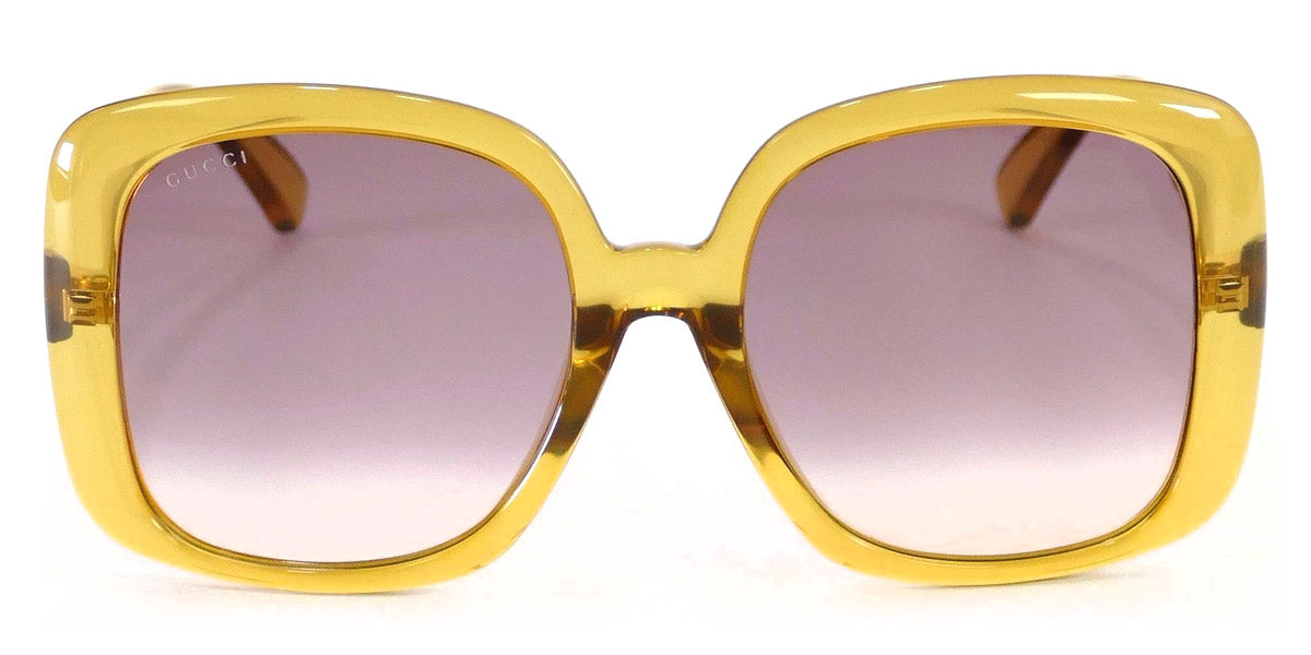GG0714SA Sunglasses by Gucci. Color: Black, Black/Green, Yellow, Size: 56-19-145. Gucci glasses are glamorous and chic, with bold contours and exaggerated volumes, which are ultimate forms of self-expression. Inspired by the vintage era, the reinterpreted iconic eyewear silhouettes are embellished with elaborate decorations and bright colors. Each and every design represents the pinnacle of Italian craftsmanship and is unsurpassed for its quality and attention to detail. Every new collection is a range of striking shapes and colors; an outstanding mix of playful vibes with retro undertones.