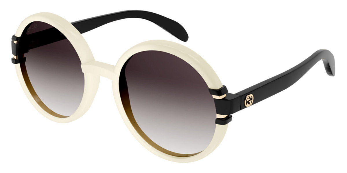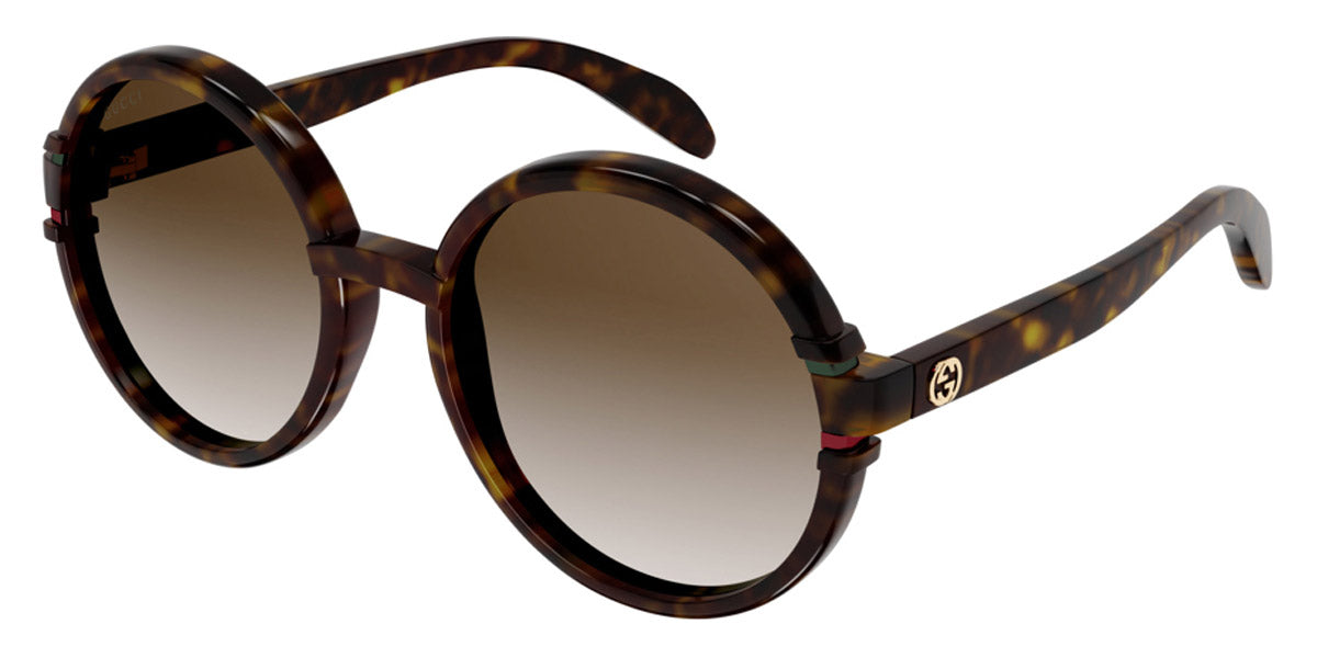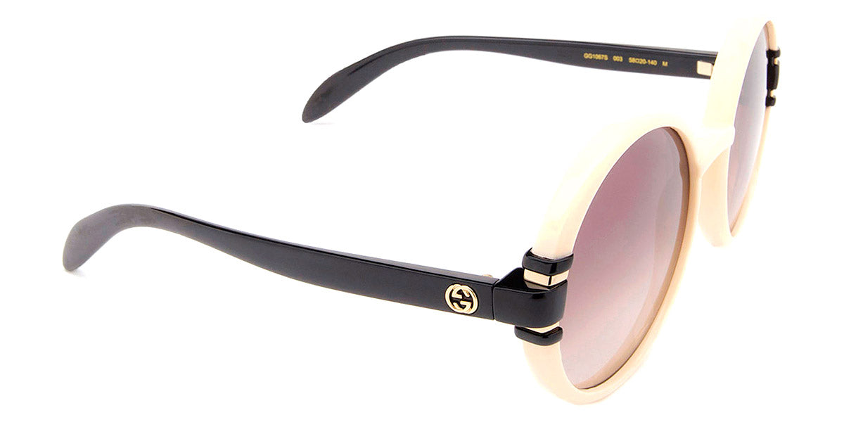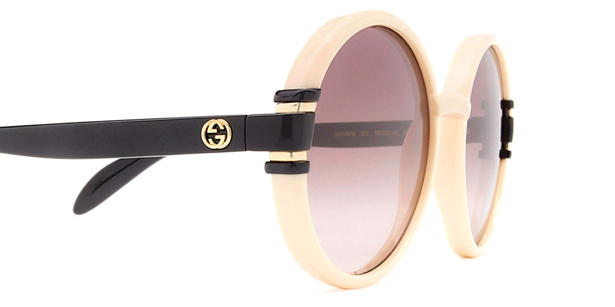GG1067S Sunglasses by Gucci. Color: Black, Brown/Havana, Havana, Ivory/Black, Size: 58-20-140. Gucci glasses are glamorous and chic, with bold contours and exaggerated volumes, which are ultimate forms of self-expression. Inspired by the vintage era, the reinterpreted iconic eyewear silhouettes are embellished with elaborate decorations and bright colors. Each and every design represents the pinnacle of Italian craftsmanship and is unsurpassed for its quality and attention to detail. Every new collection is a range of striking shapes and colors; an outstanding mix of playful vibes with retro undertones.