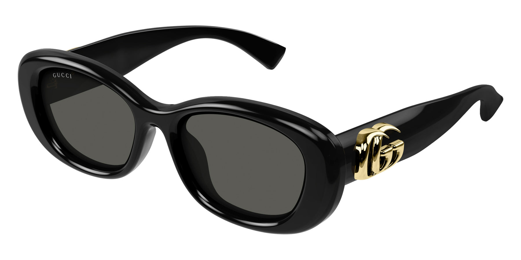 Gucci eyewear line is characterized by bold-framed glasses, from whimsical cat-eye spectacles with sharp corners and heart-shaped shades with pink lenses embellished with allover crystals to exaggerated acetate frames that feature an eccentric construction with varying thickness. Each and every design represents the pinnacle of Italian craftsmanship and is unsurpassed for its quality and attention to detail.