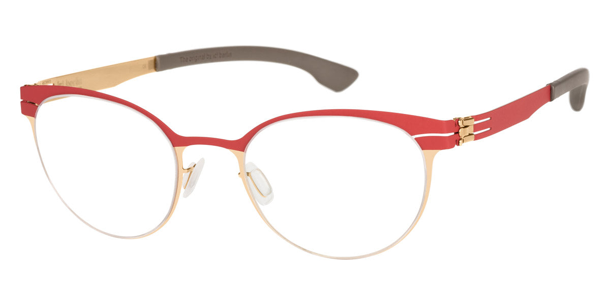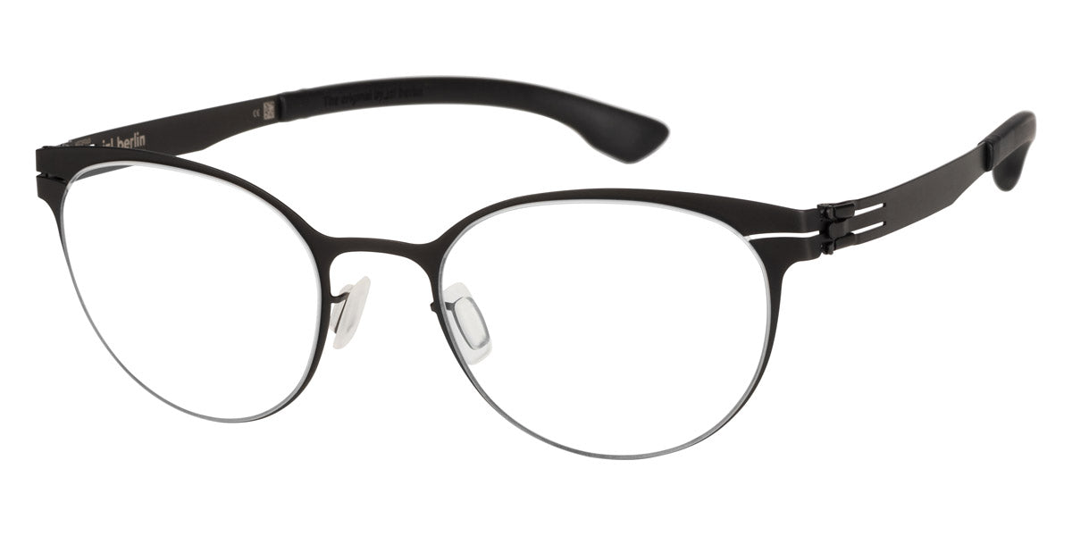 Melody Eyeglasses by Ic! Berlin®. Color: Black, Boulder Teak Pop, Marine Blue Pearl Pop, Rogochi Pop, Size: 46-19-145. Ic! Berlin® glasses are as individual as characters are. The Melody is a feminine panto shape with gorgeous PVD-lacquer contrasts. Combining the patented, no-screw hinge with stainless steel construction results in a robust, feather light eyewear design. The frame is offered in a variety of special color variations to match every single look, ranging from the “Boulder Taek-Pop" - the classic combo that screams boldness and self-confidence, to the “Rogochi Pop” – that exudes pure joie de vivre and energy.