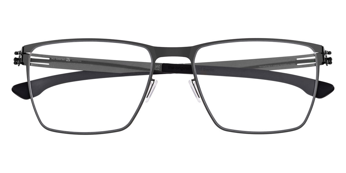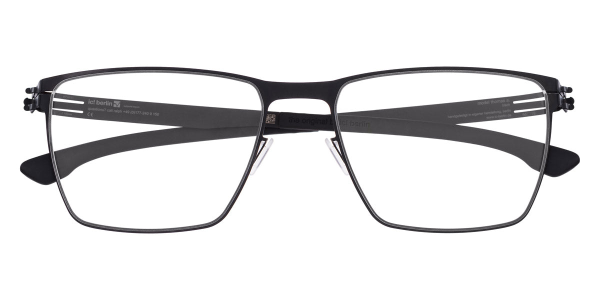 Thomas A. Eyeglasses by Ic! Berlin®. Color: Black, Chrome, Graphite, Gunmetal, Harbour Blue, Size: 56-19-150. The square shape design features a full rim metal frame. This model is available in five different color combinations and sizes. Minimalist design, amazing lightness and flexibility; no screws, no welds and perfection of style - these are the keywords of the Ic! Berlin® products. The frame is connected to the earhook with a special patented mount due to which the eyeglasses are incredibly reliable and durable. Thanks to the unique Ic! Berlin® mechanism, the owner of eyeglasses can easily assemble and disassemble them without the help of a specialist. The eyewear collections of the trend-setting eyewear manufacturer are made of the finest materials, such as high-end steel, titanium and acetate. Despite their expensive price, Ic! Berlin® eyeglasses are first of all a universal accessory which is perfect for everyday wearing.