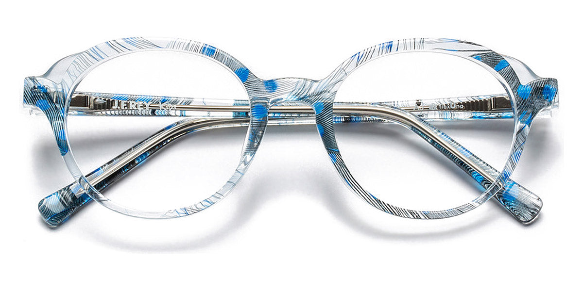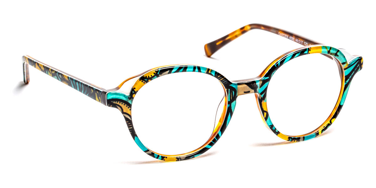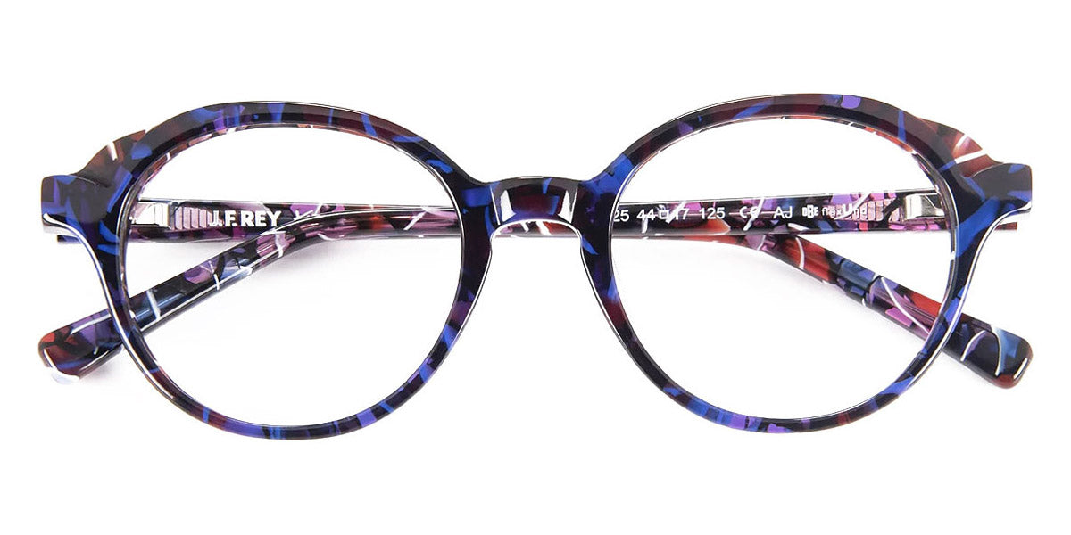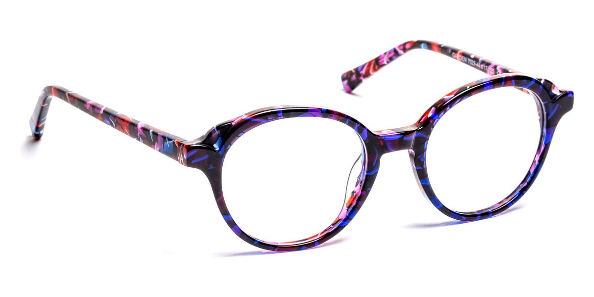 Garden Eyeglasses by J.F. Rey. Color: 2020 Feather Blue, 2080 Gradient Blue/Pink, 2590 Flower Blue, 3580 Red/Pink, 4590 Flower Green/Demi, 7025 Purple/Blue, Size: 44-17-125. Renowned French brand J. F. Rey seamlessly blends disparate characteristics, resulting in eyeglasses that effortlessly embody conservatism, daringness, flashiness, and an unpretentious aura. Introducing the Garden eyeglasses for kids by J. F. Rey, where the round shape design harmoniously combines with a full-rim acetate frame. This model offers a wide spectrum of choices, coming in six different color combinations and sizes to suit every young wearer's taste and style. The acetate frame comes equipped with flexible hinges that are easily replaceable, thanks to the renowned O.B.E. hinge – a benchmark in eyewear components – allowing for quick replacements in case of breakage. The production of these eyeglasses adheres strictly to time-tested materials, with steel and cellulose acetate representing the pinnacle of quality for crafting spectacle frames. J. F. Rey's designers embody the modern young spirit that values timeless classics. With universal style that remains perpetually relevant, the brand caters to the internally liberated individuals who fall in love with their eyewear at first sight, aligning it perfectly with their character.