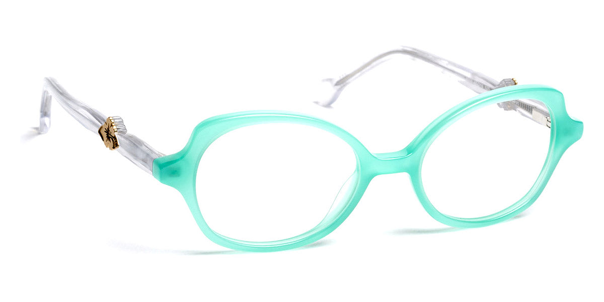 Hawai Eyeglasses by J.F. Rey. Color: 0505 Black Lace, 4010 Green/Ivory, Size: 45-16-125. Discover the Hawai eyeglasses for kids by J. F. Rey – a playful yet practical fusion of design and functionality tailored for the youngest trendsetters. The Hawai glasses bring a touch of whimsy to kids' eyewear with their cat-eye shape design. Crafted with a full-rim acetate frame, these glasses are available in two charming color combinations and sizes, catering to a variety of preferences. Designed to withstand the active lifestyles of children, these eyeglasses feature an acetate frame with flex hinges that are easily replaceable. The inclusion of the O.B.E. hinge, a reference in eyewear components, ensures a quick and hassle-free replacement in case of breakage. This thoughtful feature adds an element of practicality to the eyewear, making it a convenient choice for both kids and parents. J. F. Rey holds steadfast to a commitment to quality, using only time-tested materials in their eyewear production. This ensures that the Hawai eyeglasses for kids not only exude style but also offer durability and comfort for young wearers. Incorporating practicality, style, and resilience, these eyeglasses embody the brand's philosophy of harmonizing the unexpected. Whether your child's taste leans towards conservative, daring, or flashy, Hawai eyeglasses offer a platform for self-expression and creativity, aligning perfectly with J. F. Rey's legacy of eyewear excellence.