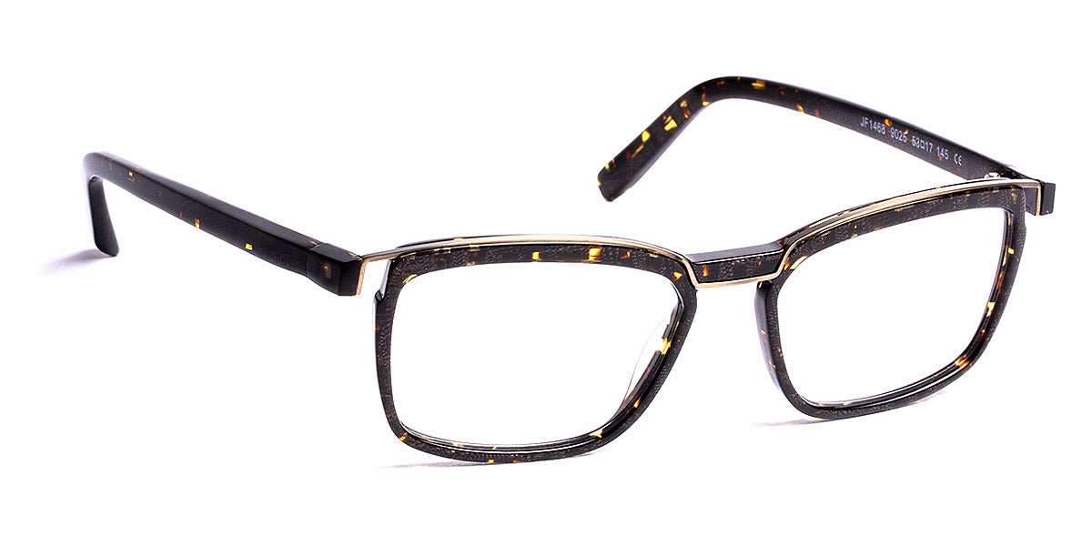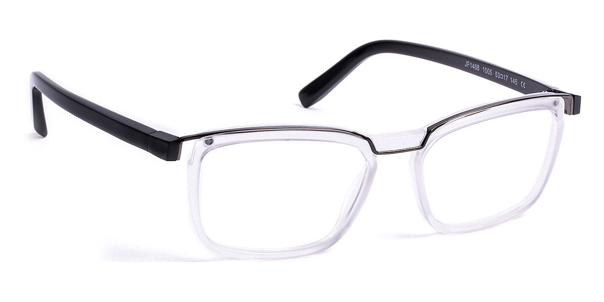 JF1468 Eyeglasses by J.F. Rey. Color: 1005 Shiny Crystal/Shiny Gunmetal, 9025 Brown Demi/Bronze, Size: 53-17-145. Elevate your eyewear game with JF1468 and experience the inimitable charm that sets J. F. Rey apart. These frames exemplify the perfect fusion of style and substance. The rectangular-shaped design boasts a full-rim acetate frame, a testament to enduring craftsmanship. Introduced in two distinct color combinations and sizes, these glasses offer a personalized fit for every discerning wearer. The acetate frame showcases rich volumes and laminations on the front, adding depth and character to the design.