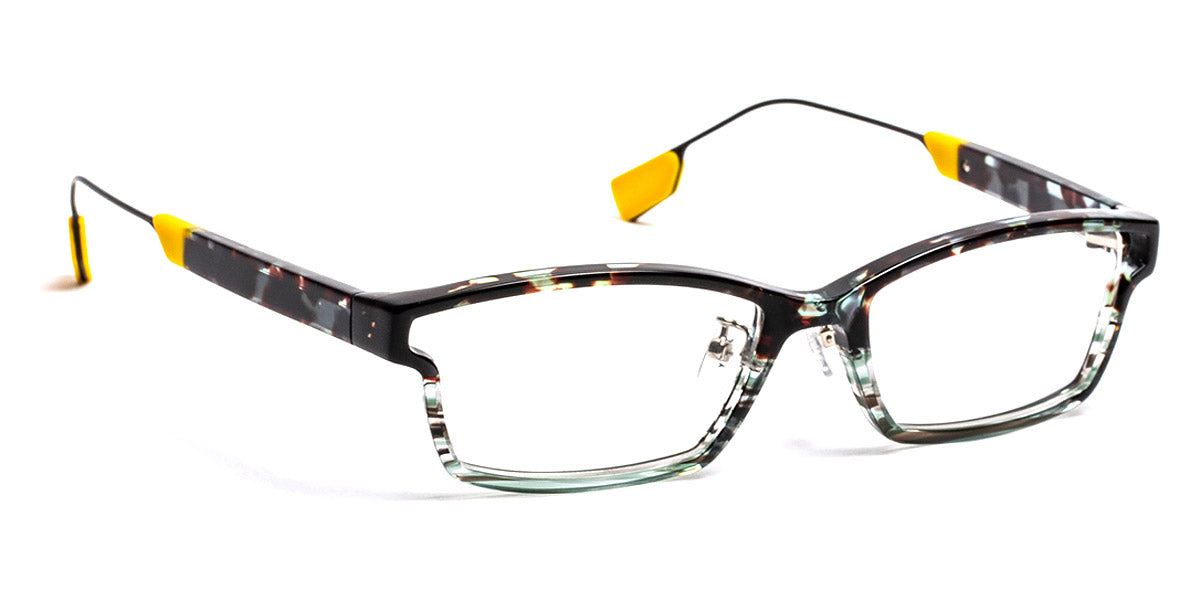 JF1504 Eyeglasses by J.F. Rey. Color: 0520 Demi Black/Blue, 0960 Demi Black/Orange, 2595 Demi Blue, 9550 Gradient Demi/Yellow, Size: 55-17-148. Step into the world of optical artistry with JF1504 eyeglasses by J. F. Rey, a testament to visionary eyewear design. These frames showcase a captivating rectangular shape with a full-rim acetate frame, effortlessly blending classic elegance with modern elements. Offered in two distinctive color combinations and sizes, these glasses cater to a variety of tastes and face shapes. The ultra-fine acetate frame combines exceptional lightness with remarkable strength, ensuring a comfortable and reliable fit. The meticulous craftsmanship is evident in the extreme finesse of the acetate frame, setting it apart in both aesthetics and quality.