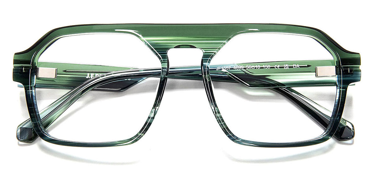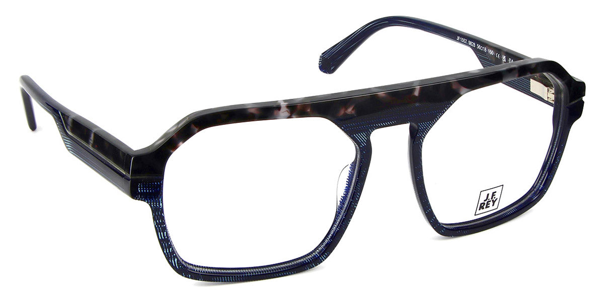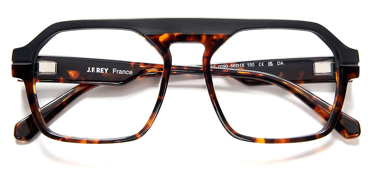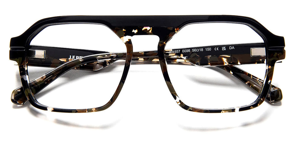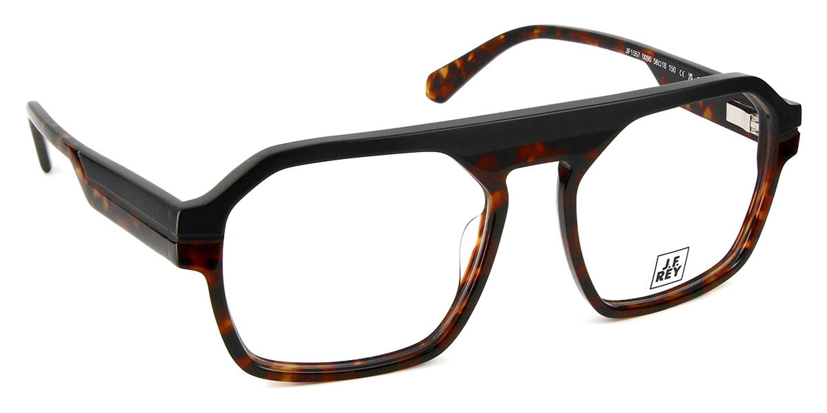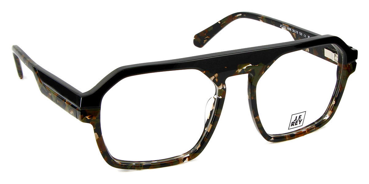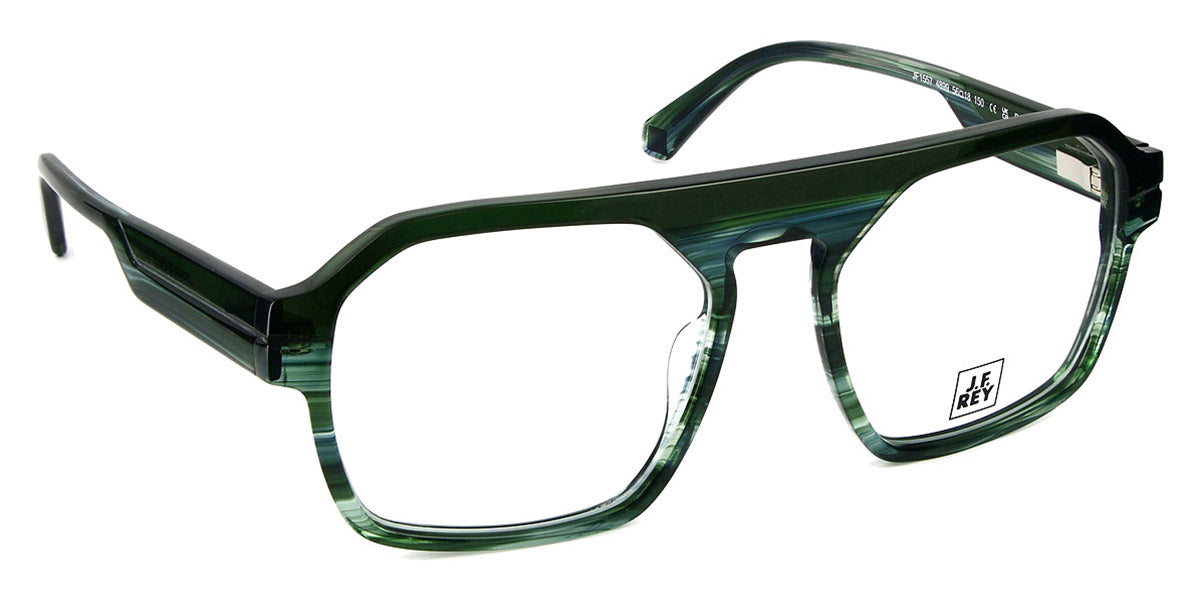JF1557 Eyeglasses by J.F. Rey. Color: 0090 Matte Black/Demi, 0098 Black/Demi, 4899 Green/Stripes Green, 9002 Demi/Gray, 9828 Demi/Blue, Size: 56-18-150.