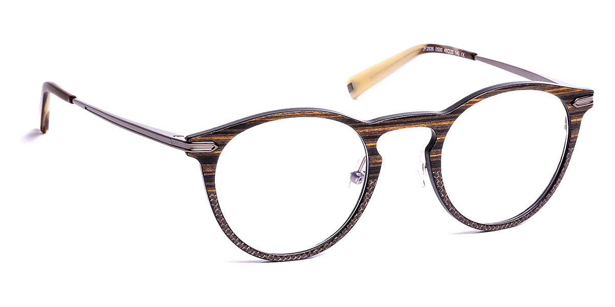 JF2836 Eyeglasses by J.F. Rey. Color: 0240 Carbon/Silver/Green, 0360 Carbon/Fiber Glass Silver/Orange, 0500 Wood/Carbon/Matte Black, 0590 Wood/Carbon Brown/Silver, 9022 Brown Wood/Carbon Blue, 9205 Wood/Carbon Black/Red, Size: 48-23-140. Prepare to be dazzled by the eyewear masterpiece that is J.F.Rey's JF2836 frames! These are not your average glasses. Oh no, they are so much more. They are the epitome of eyewear perfection, meticulously crafted to make a statement and leave a lasting impression. These frames effortlessly blend fashion and function, creating a harmonious symphony of style. With a careful fusion of textures, colors, and patterns, they will become an extension of your unique personality and elevate your style game to new heights. But it doesn't stop there - these frames are built to withstand the test of time. The genius combination of carbon-fiber and wood ensures durability without compromising on the jaw-dropping aesthetics. Prepare yourself for a lasting love affair with these extraordinary glasses.