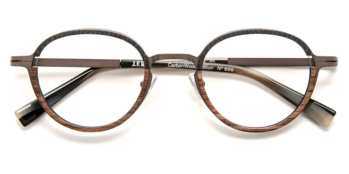 JF2980 Eyeglasses by J.F. Rey. Color: 0045 Wood/Carbon/Khaki, 0590 Carbon/Wood/Metal Gunmetal, 9520 Wood/Fiber Glasses Brown/Blue, Size: 47-24-144. Step into the realm of timeless charisma with J.F. Rey's JF2980 glasses. The classic design of JF2980, infused with modern sophistication, exudes an effortless charm. Crafted with precision and attention to detail, these glasses are a symbol of J.F. Rey's commitment to enduring style. JF2980 invites you to embrace a look that transcends trends, a testament to the enduring allure of classic eyewear.