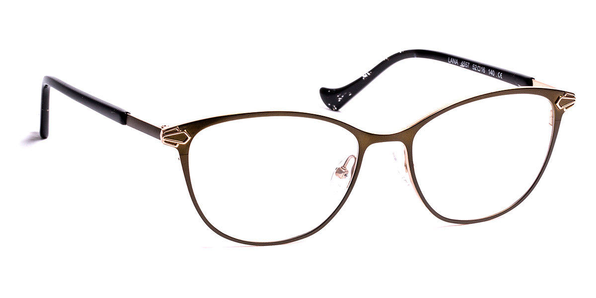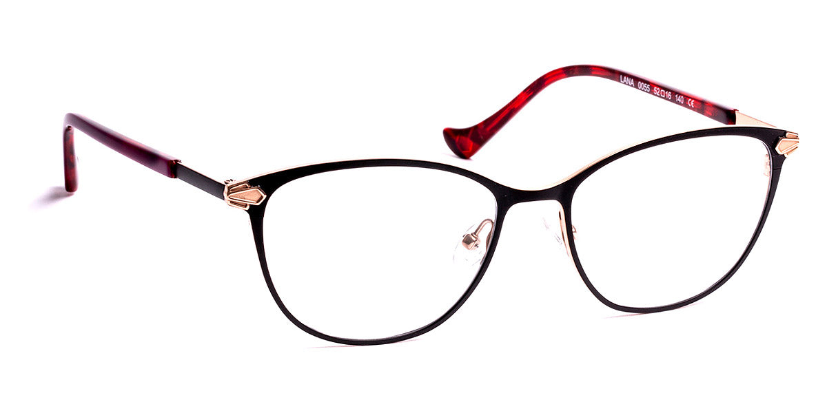 Lana Eyeglasses by J.F. Rey. Color: 0055 Satin Black/Pink Gold, 2513 Navy/Shiny Silver, 3055 Red/Shiny Brown, 4557 Khaki/Shiny Pink Gold, Size: 52-16-140. Unleash your inner diva with the J. F. Rey Lana glasses, a bold and glamorous accessory that commands attention. The oversized frames and intricate patterns on the temples make a striking statement, ensuring you stand out in any crowd. Lana glasses are not just eyewear; they are an embodiment of fearless fashion, perfect for those who want to make a dramatic entrance wherever they go.