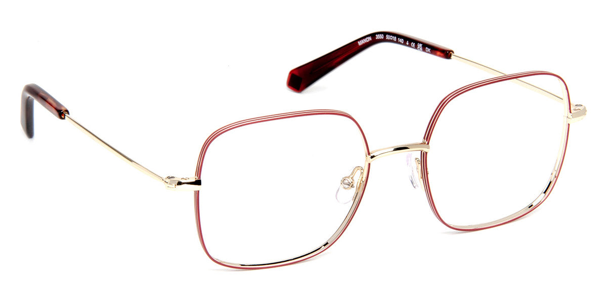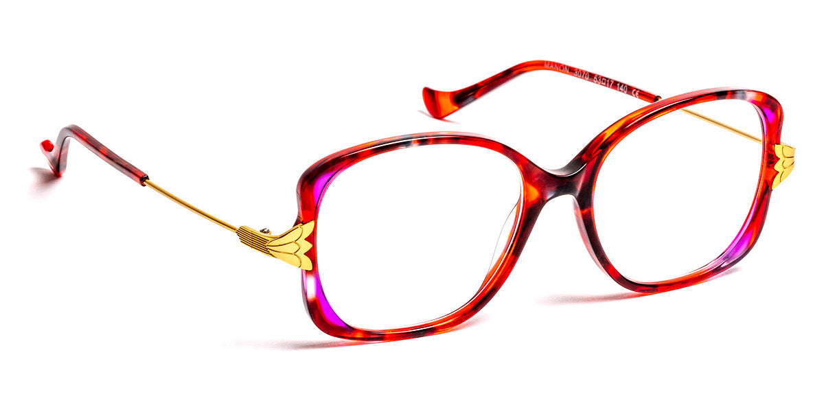 Manon Eyeglasses by J.F. Rey. Color: 3070 Red/Purple/Satin Gold, 9080 Demi Red/Pink/Satin Bronze, 0050 Black/Shiny Gold, 3550 Raspberry/Shiny Gold, 4750 Green/Shiny Gold, 5050 Shiny Gold, Size: 53-17-140. Step into the world of sophistication with the J. F. Rey Manon glasses, a celebration of elegance and refined design. The oval frames exude a sense of timeless charm, while the subtle detailing on the temples adds a touch of modernity. Manon glasses are not just eyewear; they are an expression of grace and poise. Embrace the allure of Manon and elevate your style with a touch of classic sophistication.
