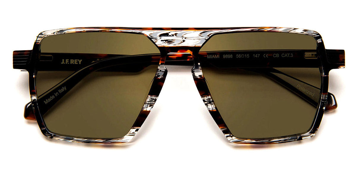 Miami Sunglasses by J.F. Rey. Color: 0000 Black Gl, 1515 Beige Brl, 2828 Blue Night Gl, 9494 Demi Dark Gl, 9898 Black/White Bl, Size: 56-15-147.