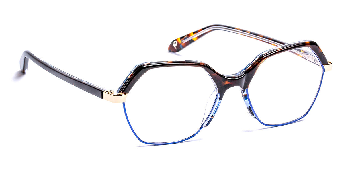 PA073 Eyeglasses by J.F. Rey. Color: 2050 Demi/Blue/Shiny Gold, 2925 Blue/Turquoise/Pink Gold, 8050 Pink/Shiny Gold/Plum, Size: 49-16-140. Unleash your inner visionary with the PA073 glasses by J. F. Rey, a celebration of bold shapes and innovative design. These frames showcase a dynamic interplay of angular and curved elements, creating a look that is both daring and sophisticated. The metallic accents on the temples add a touch of opulence, while the matte finish brings a modern edge. PA073 is a testament to J. F. Rey's commitment to eyewear as a form of artistic expression, providing wearers with a truly visionary accessory.