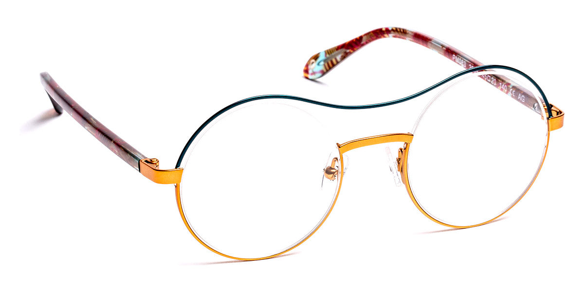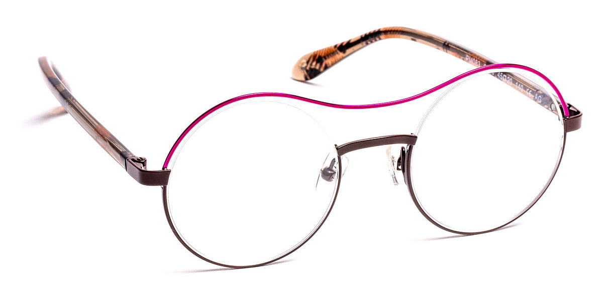 PM083 Eyeglasses by J.F. Rey. Color: 2085 Blue/Satin Pink Gold, 5030 Pink Gold/Red, 6545 Peach/Khaki, 8070 Fuchsia/Brown, Size: 45-20-140. Indulge in the fusion of art and fashion with the PM083 eyeglasses by J.F.Rey. These exquisite frames embody a harmonious blend of architectural inspiration and meticulous craftsmanship. Each pair is a masterpiece, meticulously folded and hand-colored to create captivating shapes that intertwine like brushstrokes on canvas. Crafted with unparalleled precision in French workshops, no detail is overlooked in achieving a truly unique graphic effect. The two-tone color scheme adds a vibrant contrast, enhancing the striking overlays that adorn these glasses. When you wear the PM083 eyeglasses, get ready to turn heads and make a bold fashion statement. Let your style speak volumes as you proudly showcase these works of art on your face.