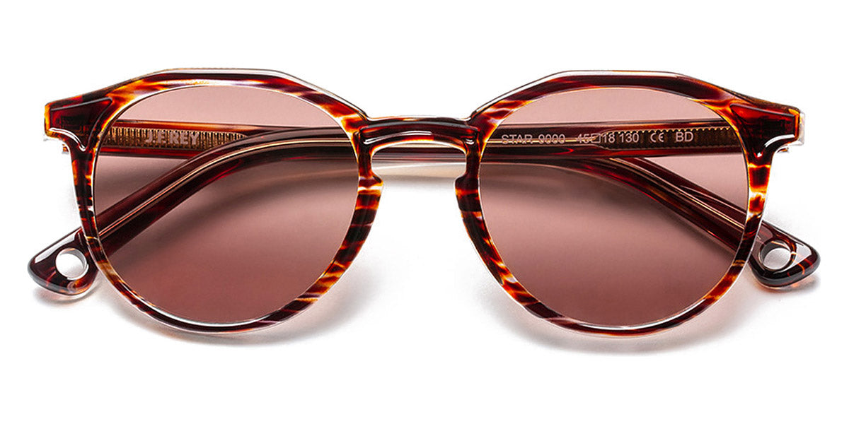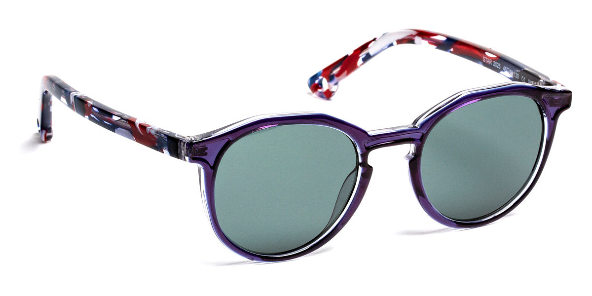 Star Sunglasses by J.F. Rey. Color: 2025 Navy/White/Blue/Red, 3030 Red, 9000 Stripes Brown, Size: 45-18-130. Step into the sun with confidence and sophistication with the Star sunglasses from J.F. Rey's sun collection. Inspired by the picturesque beauty of sun-kissed shores and azure beaches, these sunglasses exude timeless elegance with their sleek contours and luxurious acetate colors. The geometric panto silhouette add a contemporary flair, making the Star sunglasses a true fashion statement. Engineered for the modern adventurer, they feature top-tier category 3 polarized lenses, providing unmatched UV protection and enhanced visual clarity even in the harshest light conditions. Elevate your summer style with the Star sunglasses by J.F. Rey.