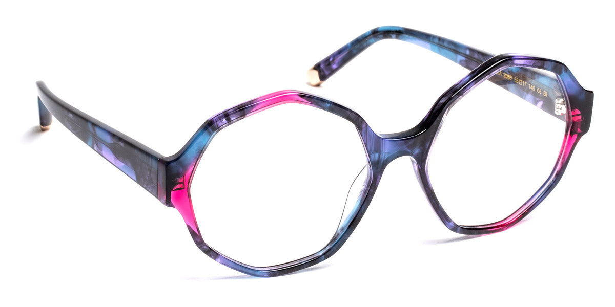 Teresa Eyeglasses by J.F. Rey. Color: 2085 Blue Refined/Fuchsia, 3070 Red/Purple Transparent, 8001 Pink Transparent/Gray Japan, 9020 Demi/Blue Transparent, Size: 55-17-140. Introducing the epitome of elegance - the Teresa eyeglasses by J.F. Rey. Crafted with the utmost care and attention to detail, these acetate frames create a visually striking geometric silhouette that's anything but ordinary. With a stunning array of vibrant color combinations to choose from, the Teresa embodies J.F. Rey's relentless pursuit of excellence. Whether you want to make a bold statement or add a touch of sophisticated charm to your ensemble, these glasses will effortlessly elevate your style game to new heights. Experience the allure of Teresa and indulge in the perfect balance of fashion and comfort today.