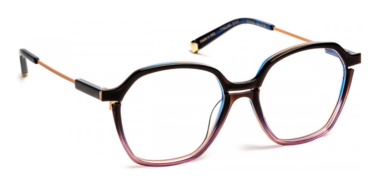 Thelma Eyeglasses by J.F. Rey. Color: 0145 Black and Crystal Glitter/Khaki, 4585 Green Horn/Pink Powder, 7570 Purple and Pink Striped/Blue Electric, Size: 52-16-140. Introducing the Thelma eyeglasses from J.F. Rey's HYBRID collection - where style meets functionality in perfect harmony! Crafted with a unique blend of metal and acetate, these frames are not only visually stunning but also built to last. Experience the epitome of durability, strength, and flexibility with every wear. The meticulous design ensures a seamless fit with carefully crafted elements that effortlessly come together. Embrace modern elegance and make a bold statement with these one-of-a-kind frames that will leave everyone in awe of your style. See the world through fashionable lenses with Thelma eyeglasses from J.F. Rey.
