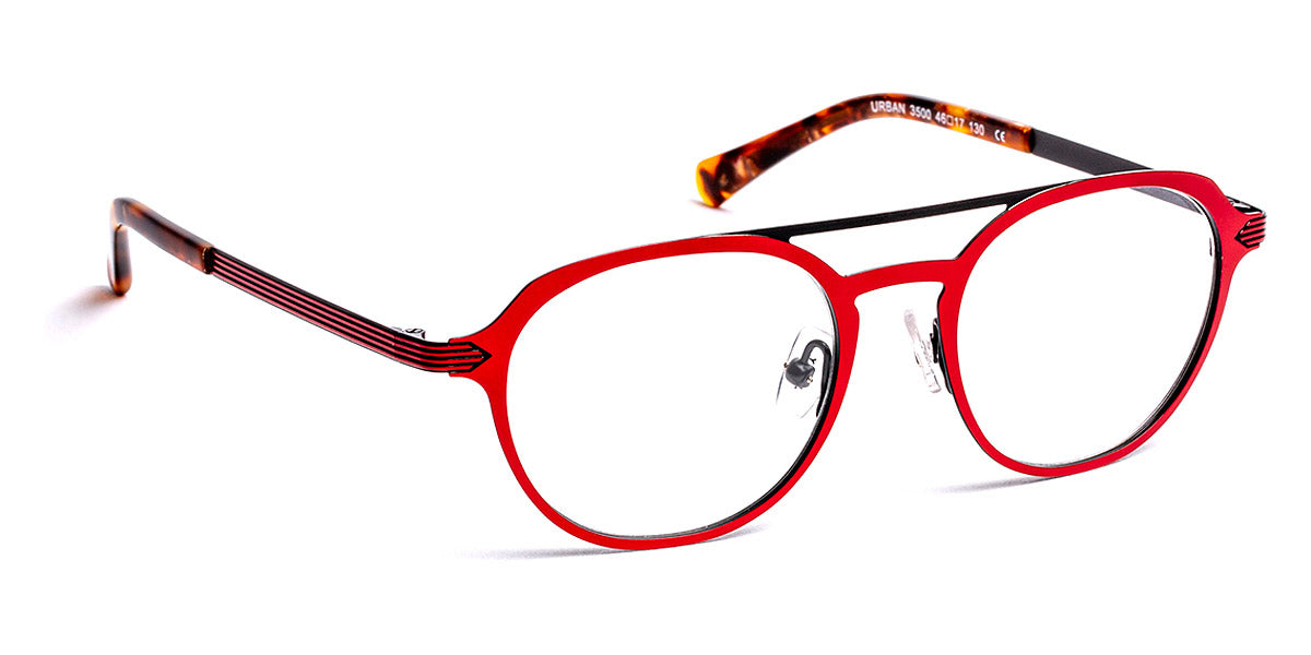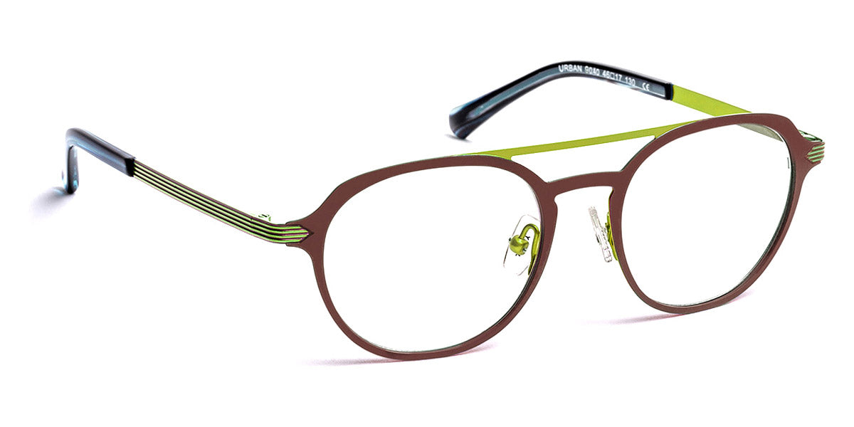 Urban Eyeglasses by J.F. Rey. Color: 3500 Burgundy/Black, 9040 Brown/Green, Size: 46-17-130. Elevate your eyewear collection with the Urban eyeglasses from the J.F.Rey Metal Collection. Designed to embody the perfect balance of style and functionality, these frames are a must-have accessory. Crafted from high-performance stainless steel, the Urban frame features an exclusive screwless flex hinge design for unparalleled comfort and durability. With its sleek lines, geometric shapes, and satin-finish colors, J.F. Rey's METAL collection exudes modern elegance. Experience innovation at its finest with these statement frames that redefine contemporary eyewear.
