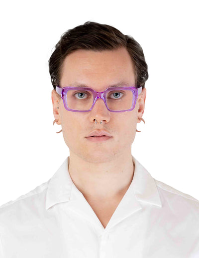 PERCY Eyeglasses by Kirk & Kirk. Material: Acrylic, Shape: Square, Color: Black, Blue, Bordeaux, Brown, Gray, Jade, Orange, Pink, Red, Violet, Yellow, Matte Black, Matte Crystal, Matte Vamp, Size: 50-22-143. Consisting of premium, lightweight acrylic, these frames provide exceptional comfort and durability. The Kirk & Kirk's PERCY eyeglasses exhibit a sleek, rectangular design that offers a refined and modern aesthetic. Available in a spectrum of vivid colors, the PERCY glasses for vision are ideal for those seeking to blend sophistication with a pop of personality in their eyewear.