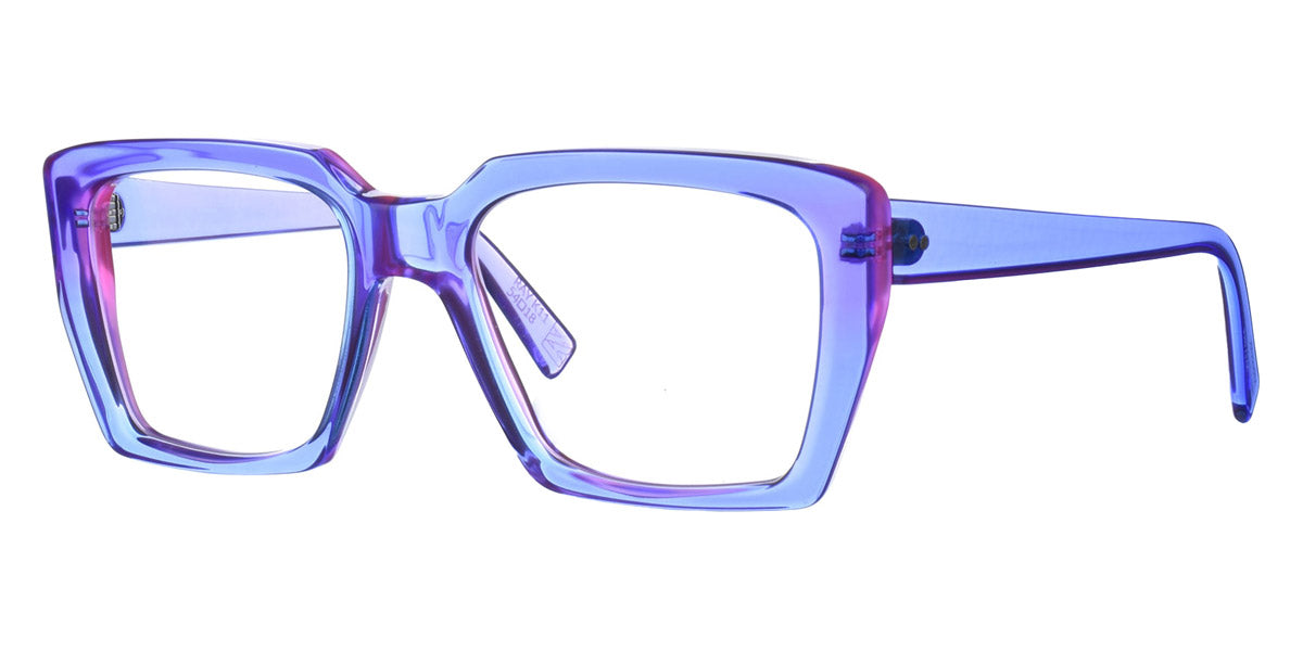RAY Eyeglasses by Kirk & Kirk. Material: Acrylic, Shape: Square, Color: Purple, Fuchsia, Ocean, Earth, Apple, Capri, Marine, Midnight, Violet, Chilli, Juniper, Melon, Size: 54-18-143. The Kirk & Kirk's RAY glasses for vision boast a classic, round frame that seamlessly blends retro charm with contemporary style. Available in an array of vibrant, translucent colors, the RAY eyeglasses are ideal for individuals seeking a timeless yet distinctive look in their eyewear. Made from premium, lightweight acrylic, these frames offer exceptional comfort and durability for everyday wear.